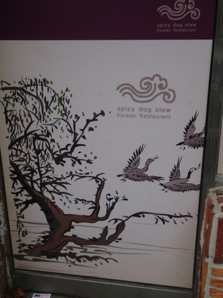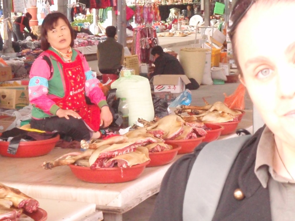 I have eaten dog, in China, not Korea, didnt know til after we had eaten it. Whatever dish it was it tasted really great! Our guide (guard? it was back in the day when China wasnt that open) had great delight in telling us we had eaten it after lunch had been consumed!!! Not that I would do it if I knew in advance, i must admit to a slight churn of the tum when i saw the dog legs on display in your blogg.
