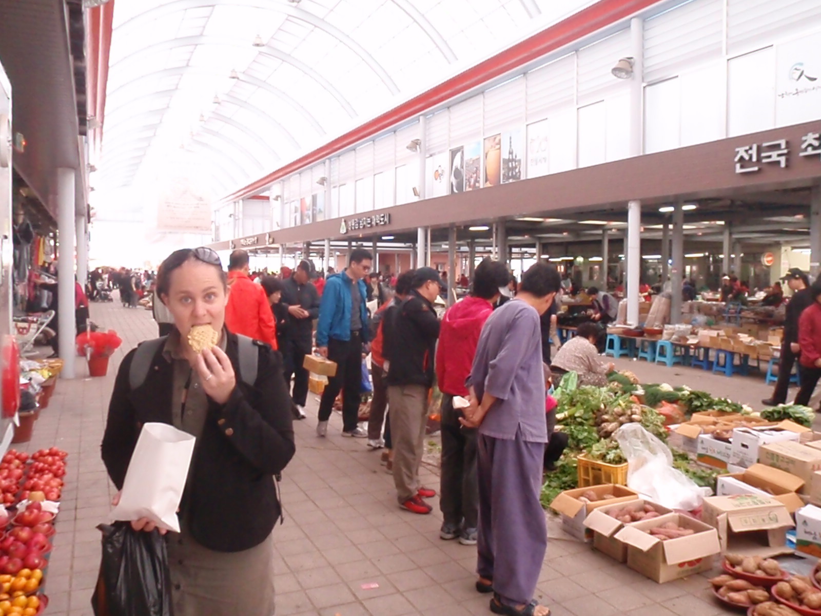 The market is on every eight days and is announced by a loud speaker early in the morning around the village. It is full of vegetables, fruit, fish, b-grade puffer jackets, street food, nic nacs, kimchi, mandu (the greatest food in the world right now), octopus balls, rice, spices, faggots (actual faggots- first time ever used in correct context), hats, dog meat, socks, e-grade duvets, eggs….wait a minute…did they say… yip, you read it correctly, dog meat. In our travels we have seen some very interesting things but nothing as controversial as this.
