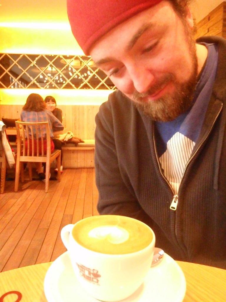 We wandered 100 metres down the road and we found a cafe with a picture of a coffee with latte art, and the word’s barista training school. We both looked at each other and got very excited.
