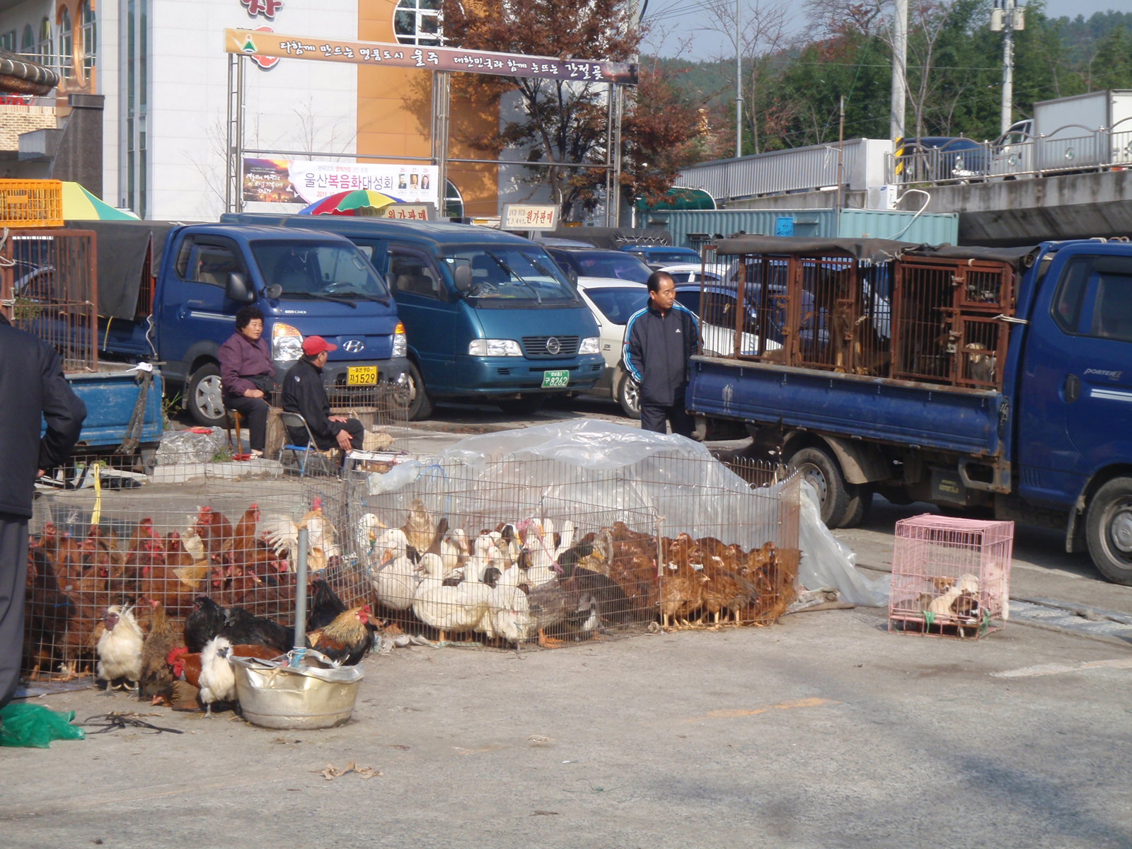 After the consumer parts with his or her cash they take the produce to be consumed in the comforts of home with a nice side plate of kimchi, or taken to an establishment (see below) to make a sweet profit from a dog bulgogi (Korean barbecue) or a nice winter stew.