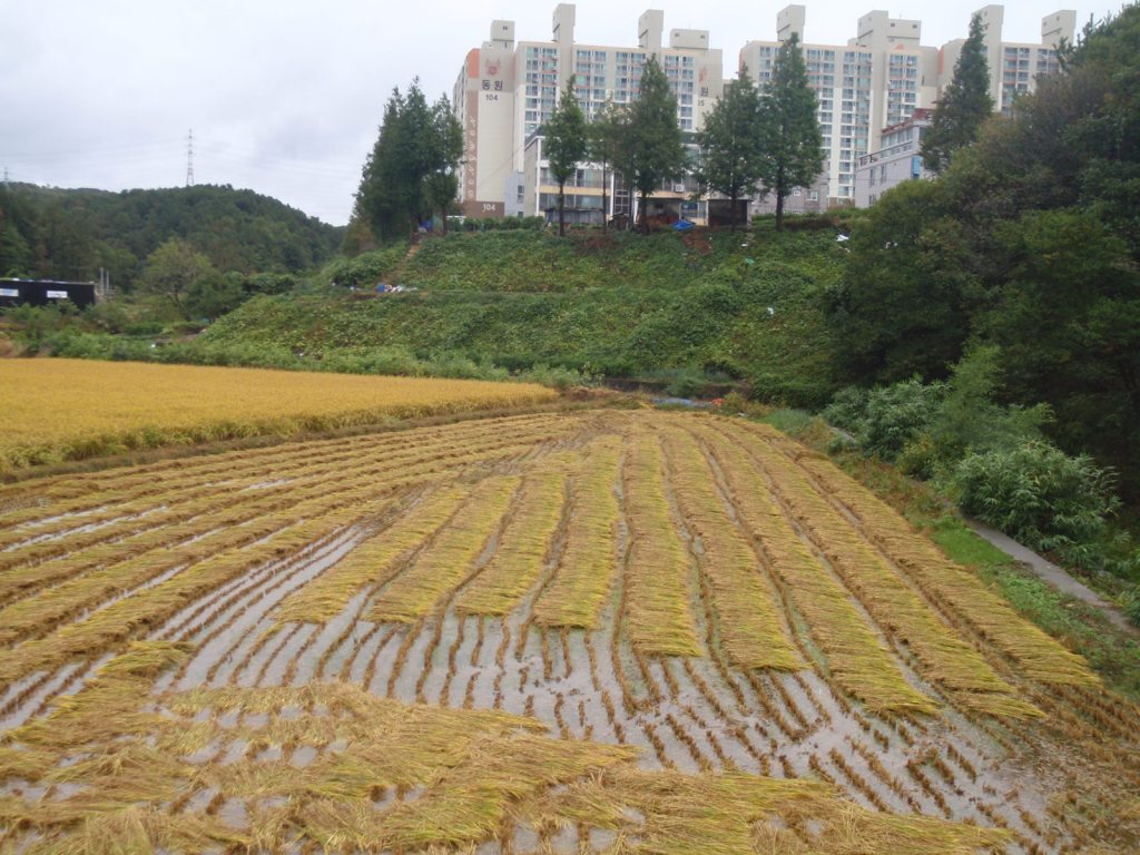Korea is a beautiful land as well. There are many rivers, woods, hills and mountains throughout with scattered urban areas breaking up nature. Because of the relatively small landmass and high population, villages on the same scale of Bulls, Foxton or Milton are full of a high rise apartment blocks. This allows areas for food production and forestry in the other areas. And also nicely squishes the masses of factory people, businessmen, petrochemical engineers and nuclear plant workers into a condensed area.