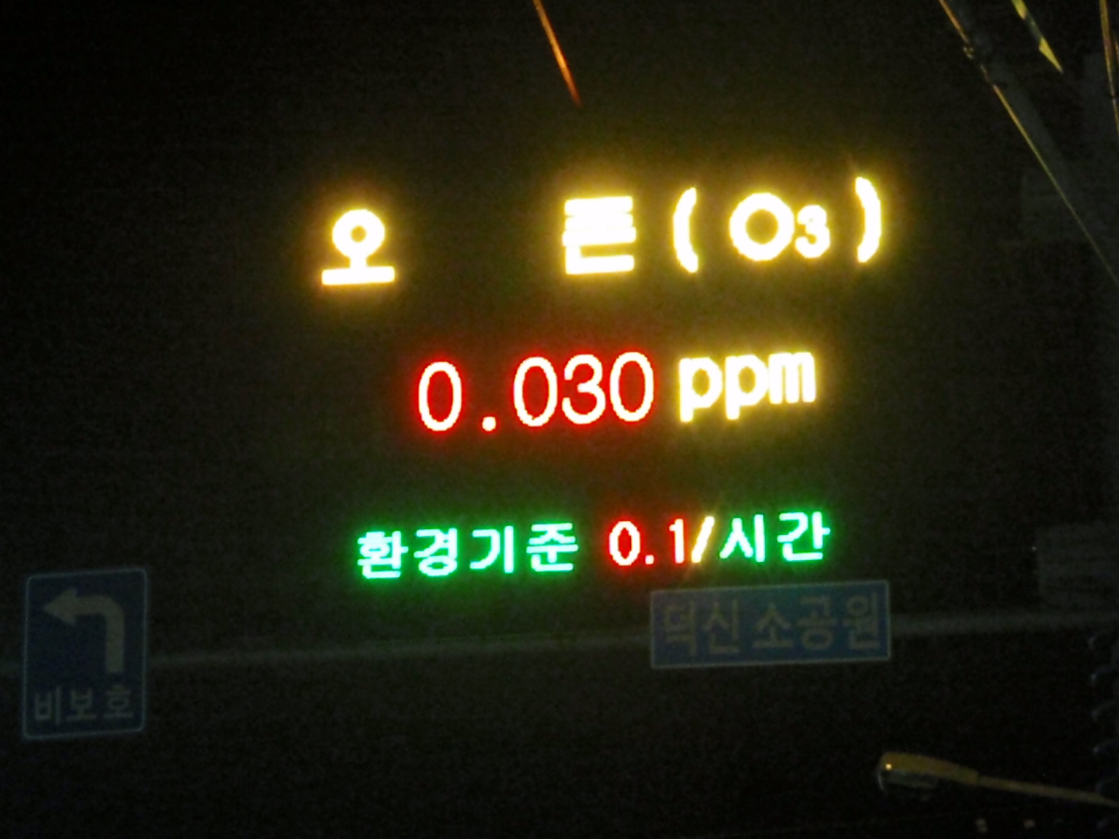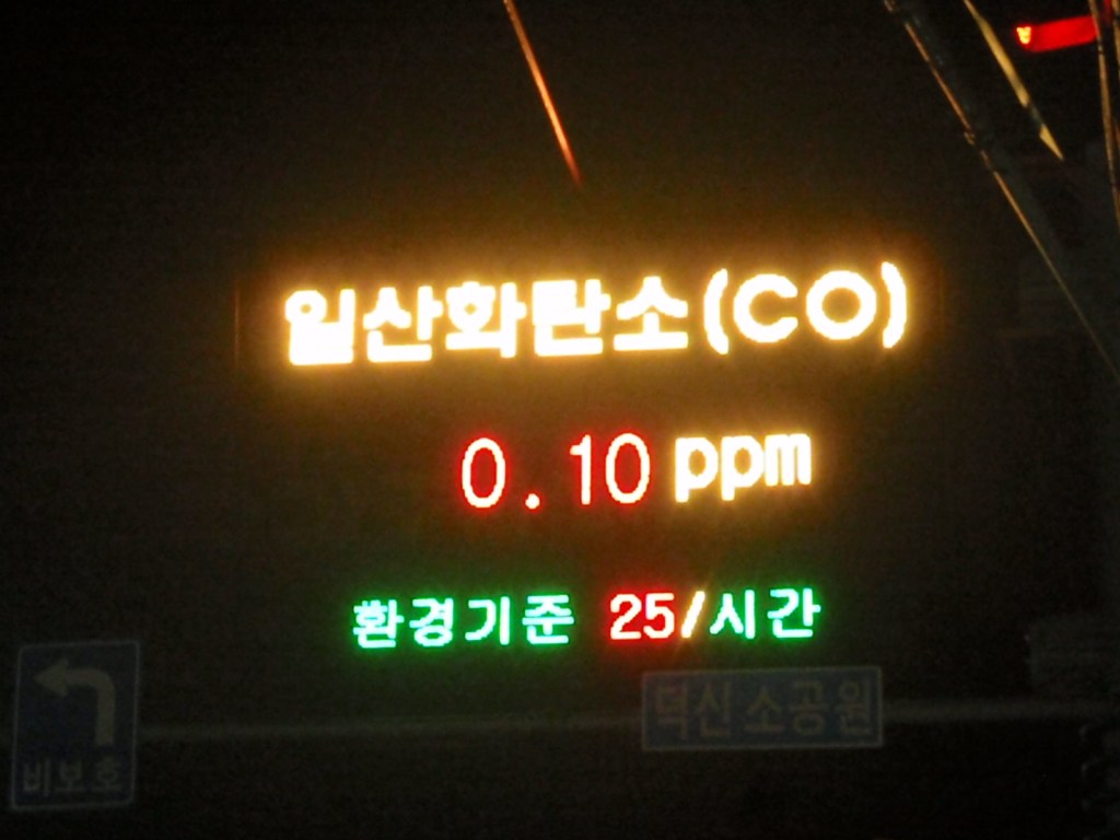 But it can’t be that bad, right?  Well, thoughtfully someone has installed gigantic signs in our village so that we can at any time of day or night, know EXACTLY how much of each chemical we are breathing.  Phew.
