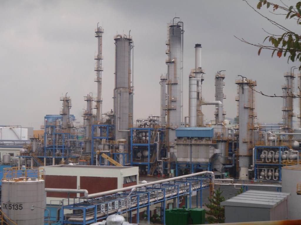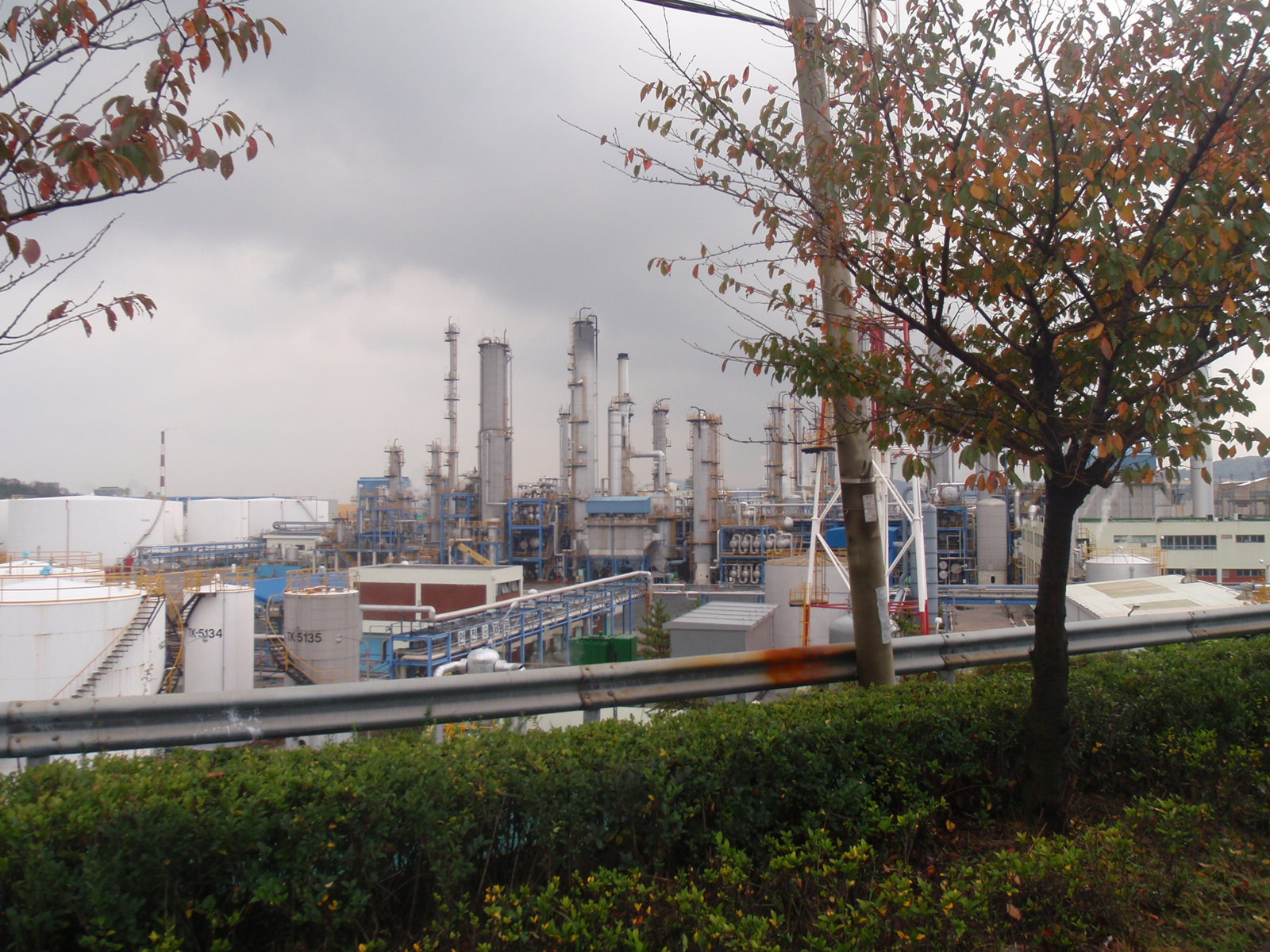 It appears that lurking just over yonder from our lovely forested hills is the biggest industrial  and petrochemical area in Korea! Yay!