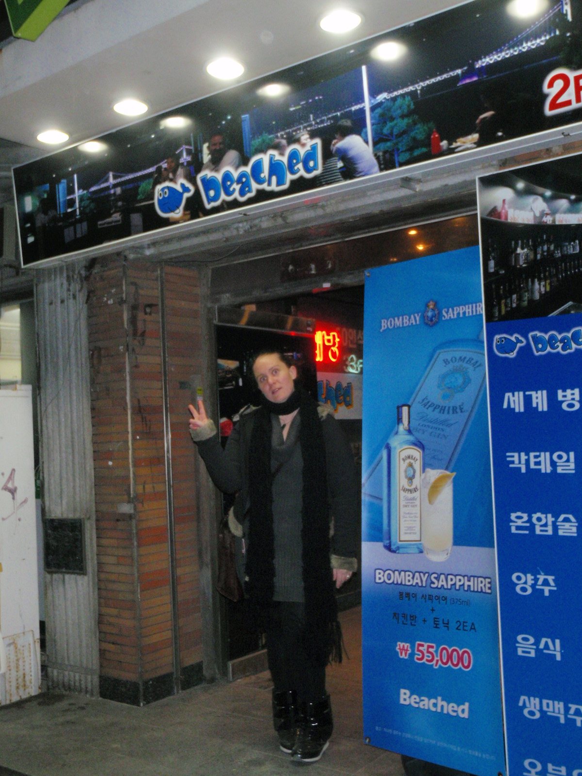 Our flight was to be extremely early the next morning thus our needing to be in Busan the night before.  With an evening to kill we thought what better time to try and find the New Zealand bar we had recently heard about.  So off we trotted to Gwangali Beach with excitement growing about the possibility of fush and chups and Monteiths beer!!!