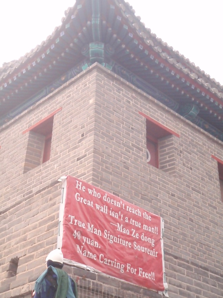 The drive to The Great Wall was to take around an hour and a half, so to break up the journey we were taken to a Jade “Factory” – pretty much any time you are told you’re being taken to any sort of factory, it basically means you’ll get about 2 minutes of being spoken to about the product, then an hour to wander around the merchandise being hassled by pushy sales people. We managed to avoid buying anything but spent the time wandering around looking at stuff and taking photos.