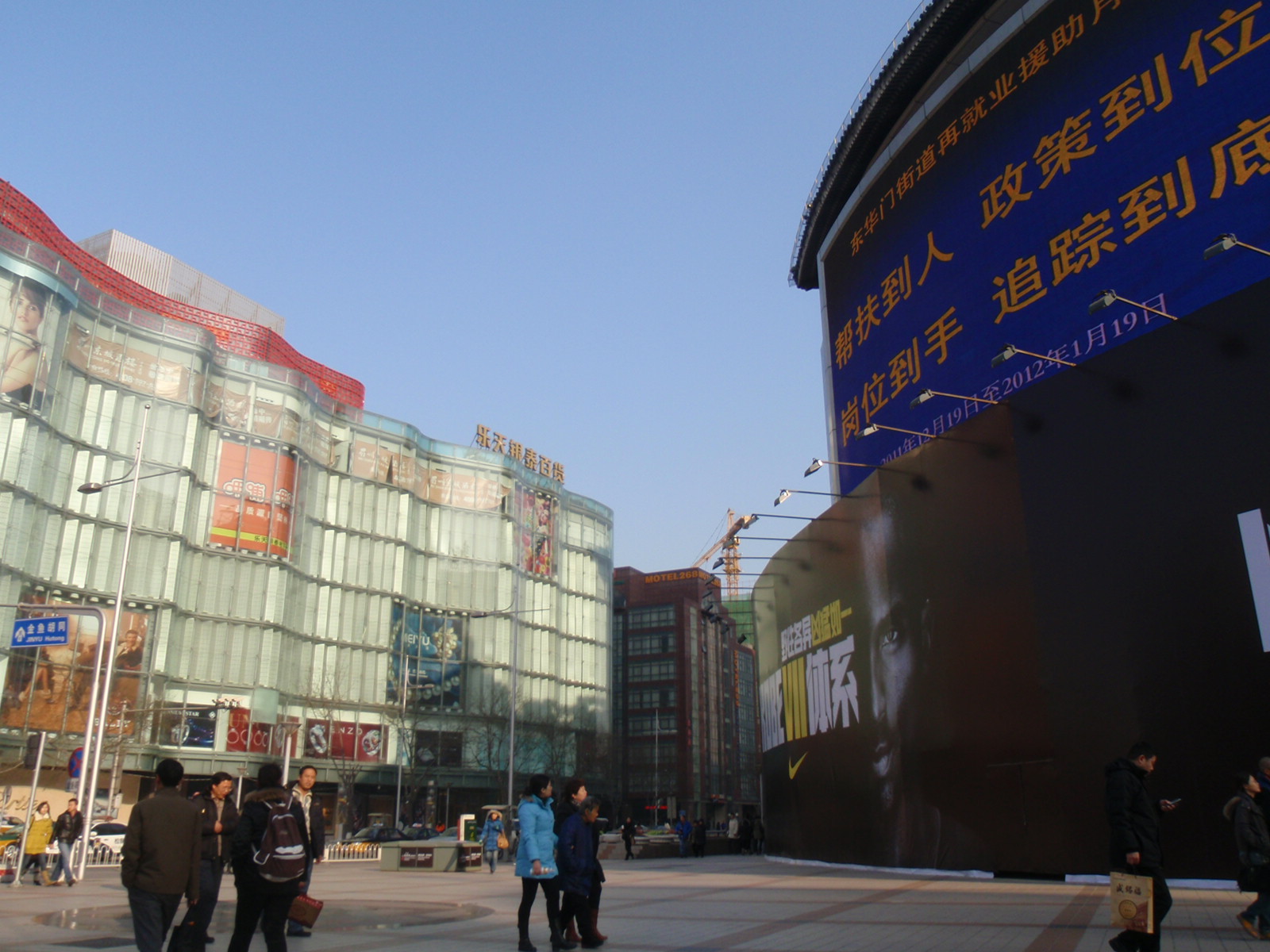 With a plan to head back this way later in the night, we instead walked around the downtown area and were buzzed out by the contrast between the Beijing we had seen in the morning and the Beijing we were experiencing in this area. Huge Nike billboards, gargantuan shopping malls and buildings, big buildings. It sort of brought us back to reality a bit.