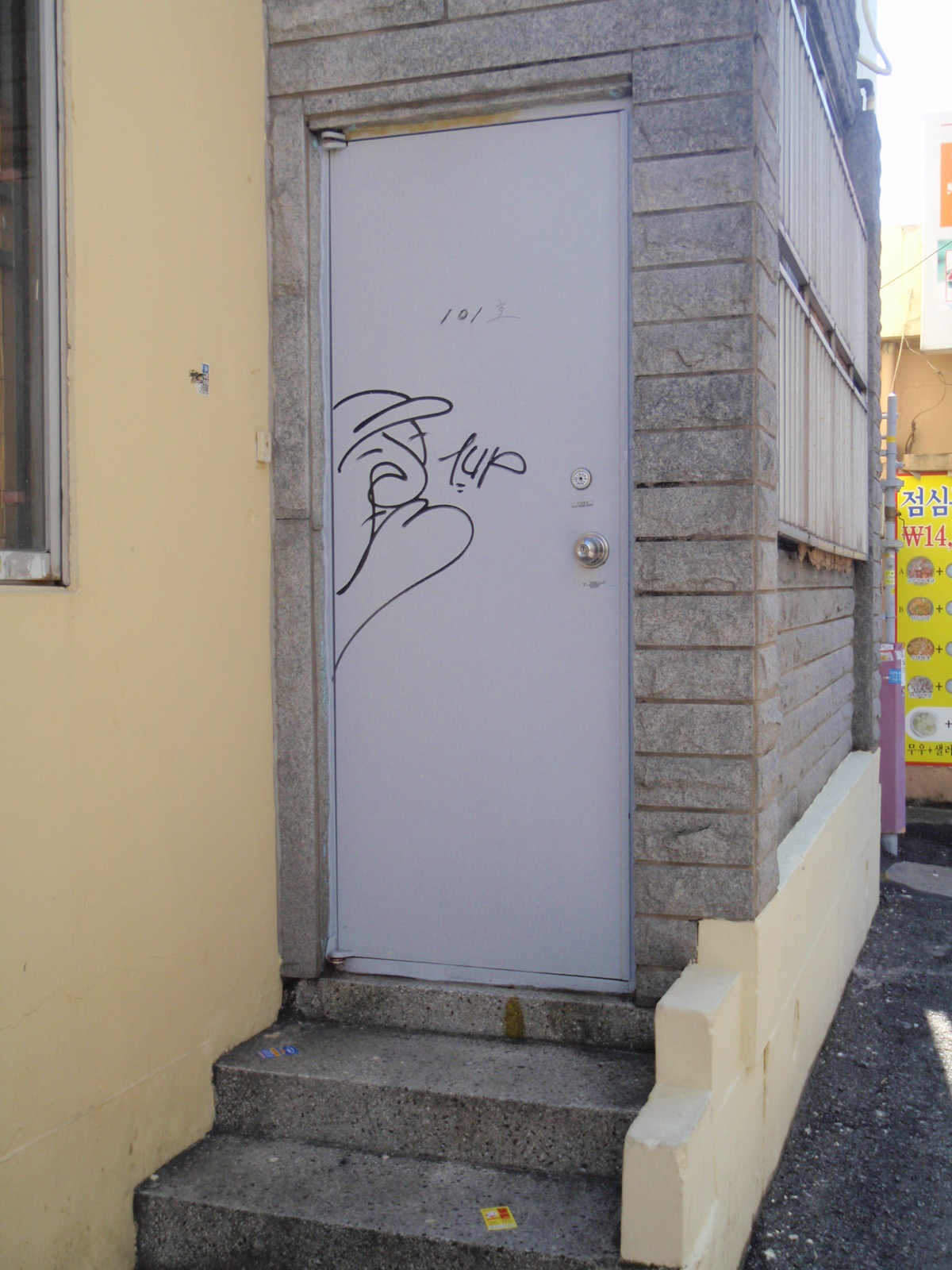 Yesterday we went for a walk around a part of Busan we hadn’t previously explored, the area around Busan National University known as PNU. We ended up there due to the rumour of a great burger joint (more about that in a later post)…but ended up discovering something totally unexpected in the form of loads of amazing street art everywhere. Lurking down alleys, adorning the entrances to various establishments and hanging on walls was an impressive array of art.