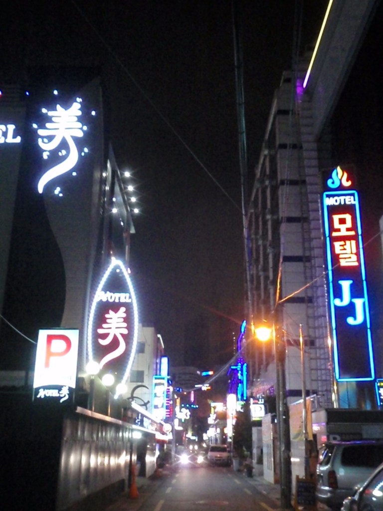 Having spent Saturday going hard enjoying the sights and sounds of The Big City (Busan) we found ourselves needing somewhere to stay for the night.  As we didn’t have a booking anywhere, we looked to the neon lights of the love motel district as a solution to our accommodation woes.