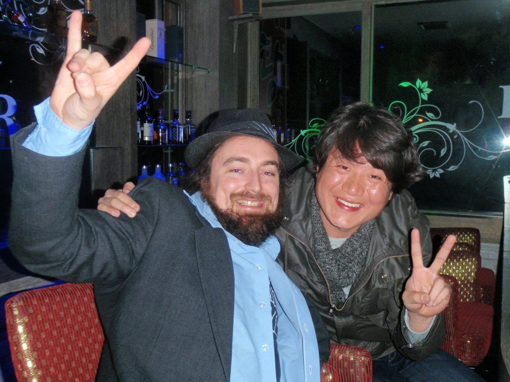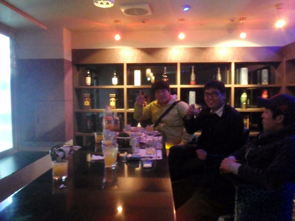 Turns out we were inadvertently “in” with the owner of the bar we now found ourselves! The staff at this bar didn’t speak English but were also gorgeous, accommodating and very friendly ladies who looked after really well. We had a drink with Mapia and H-J enjoyed the cross-lingual banter with the staff while Dan went and hung with the only other customer in the place, his friend haven fallen asleep and then abruptly woken up and left. Prab plays on his phone (he has obviously been in Korea way too long!).