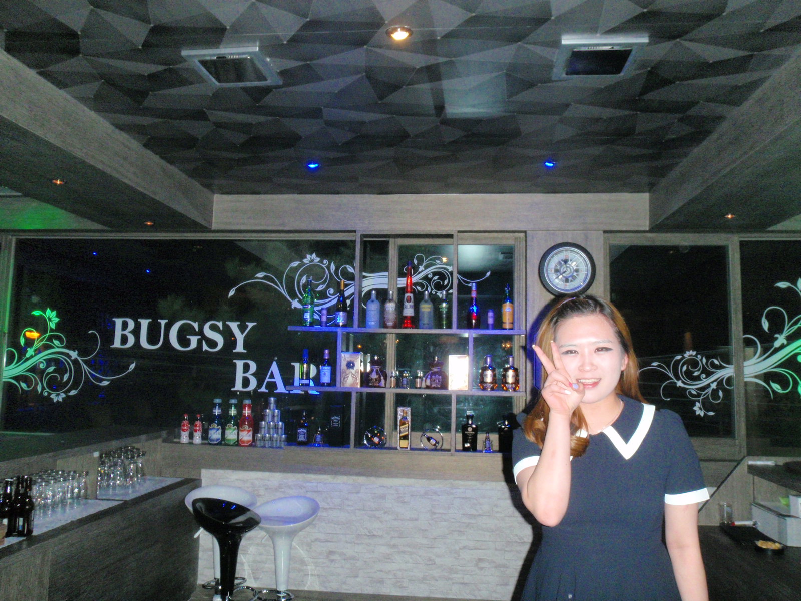 After many goodbyes and promises to return sometime, we head off to the next place on our hit list – Bugsy Bar. Same non-descript entry-way, up some stairs and into yet another lovely, large bar. With only two other customers.