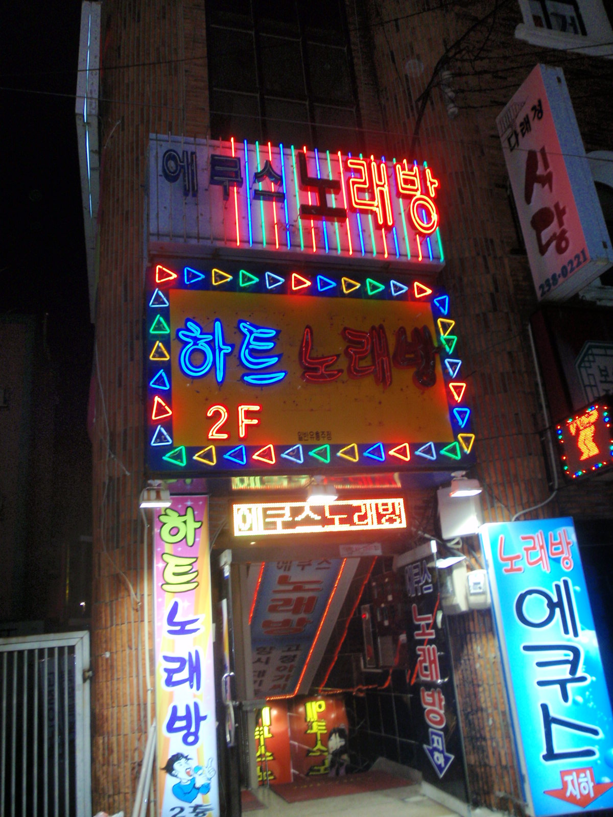 Dan is actually drunk enough and having a fantastic night enough to not put up any resistance at all and in fact pulls H-J down the stairs of the first neon norae bang sign we come across.