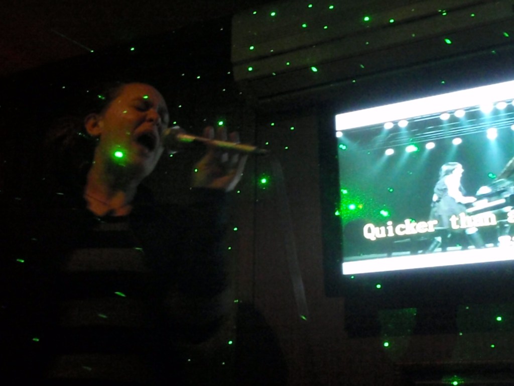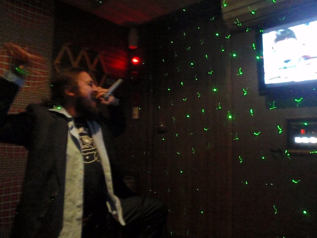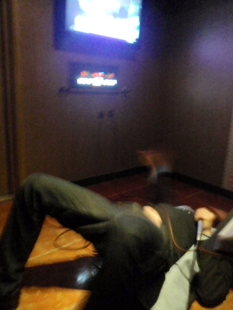 We are taken down a boring hallway, drink orders taken and we are deposited into our very groovy little private room. The song folder had an amazing selection of songs in English. Needless to say, we sang out little hearts out in the privacy of our karaoke cave and not too much more needs to be said on that front. The photos speak for themselves.