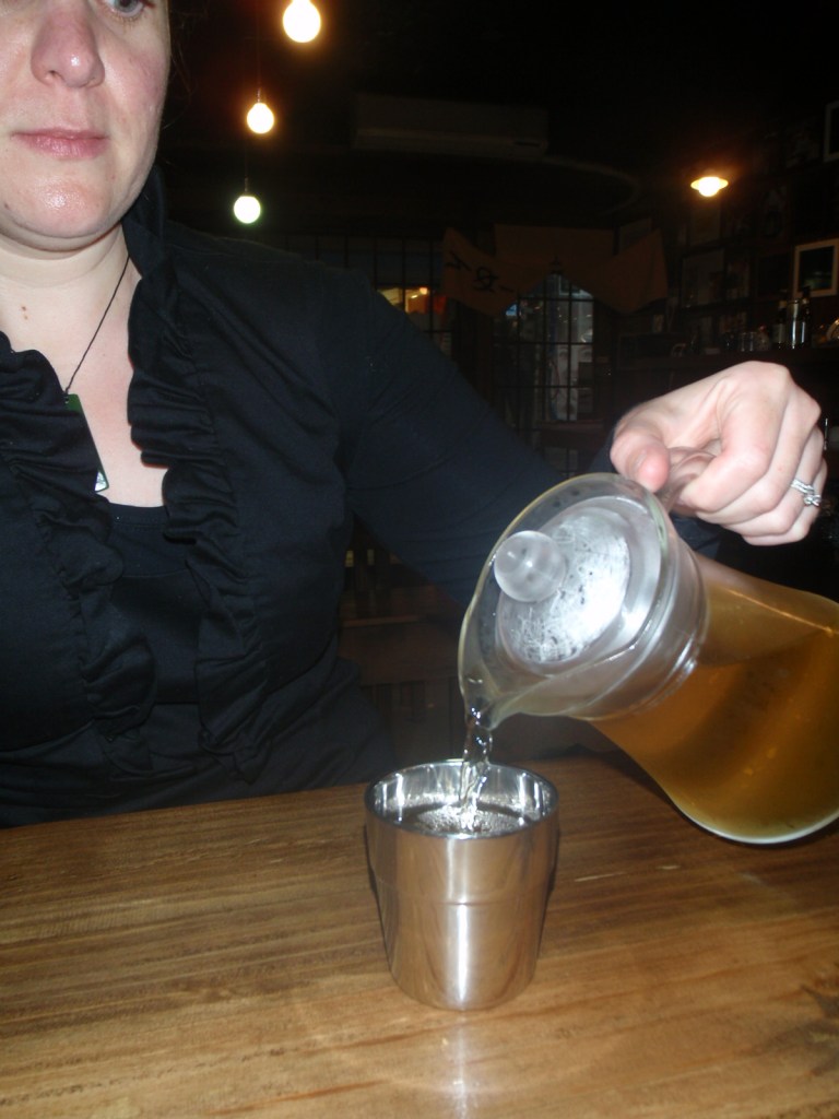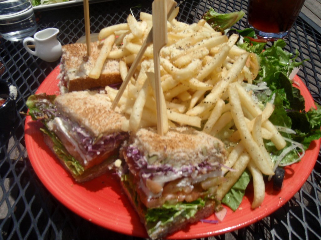The boccochiny (hehe) sammy was pretty good too! Hearty bread, delicious fresh cheese and copious amounts of salad both in the sandwich as well as on the plate. In the ultimate test of willpower, H-J un-buried the salad from under the generous serving of fries, leaving them neglected and uneaten!