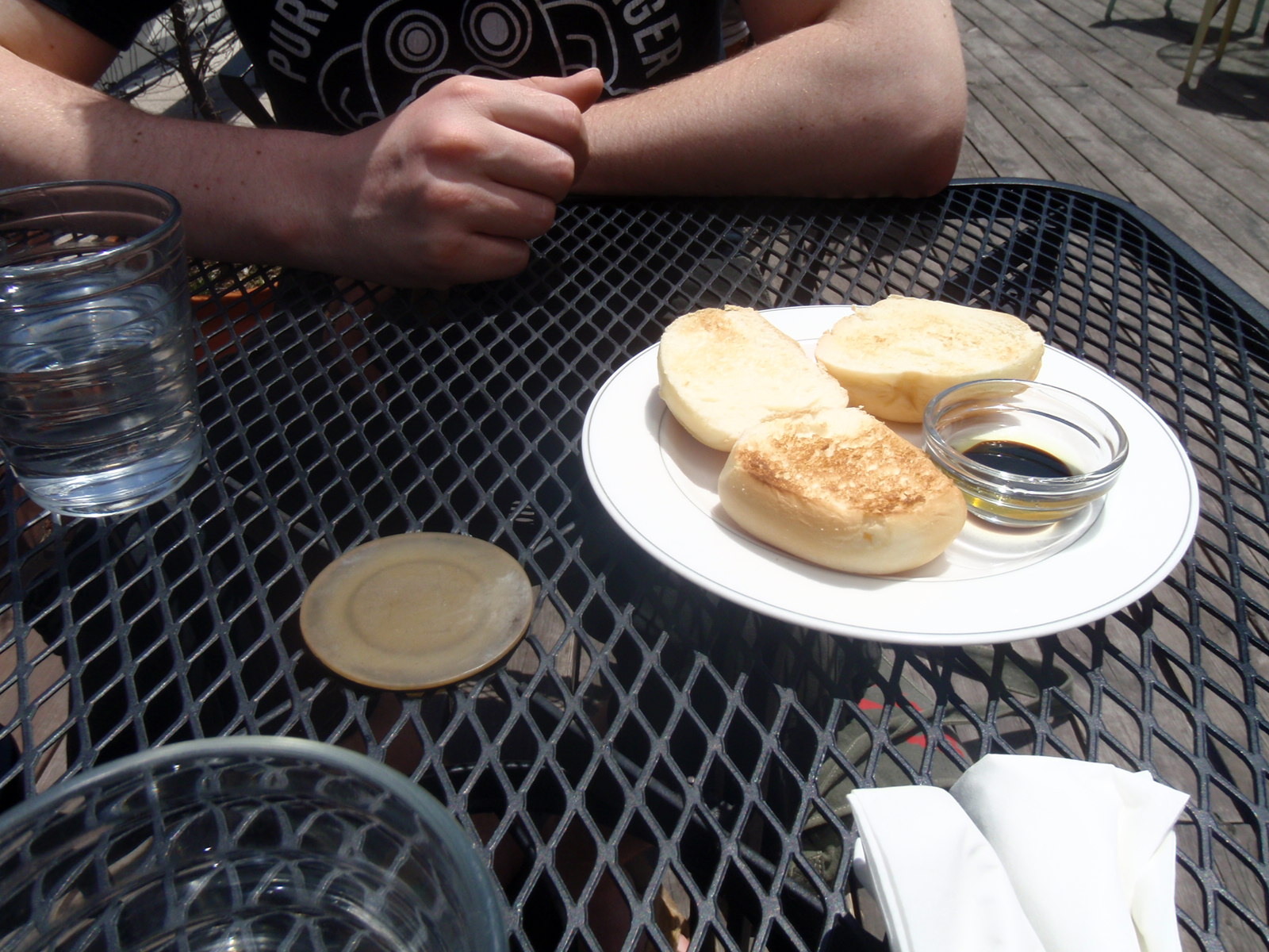 Somewhat surprisingly, we were presented with a free appetiser of bread with balsamic and olive oil dip was bought to the table with our drinks – what a nice touch!