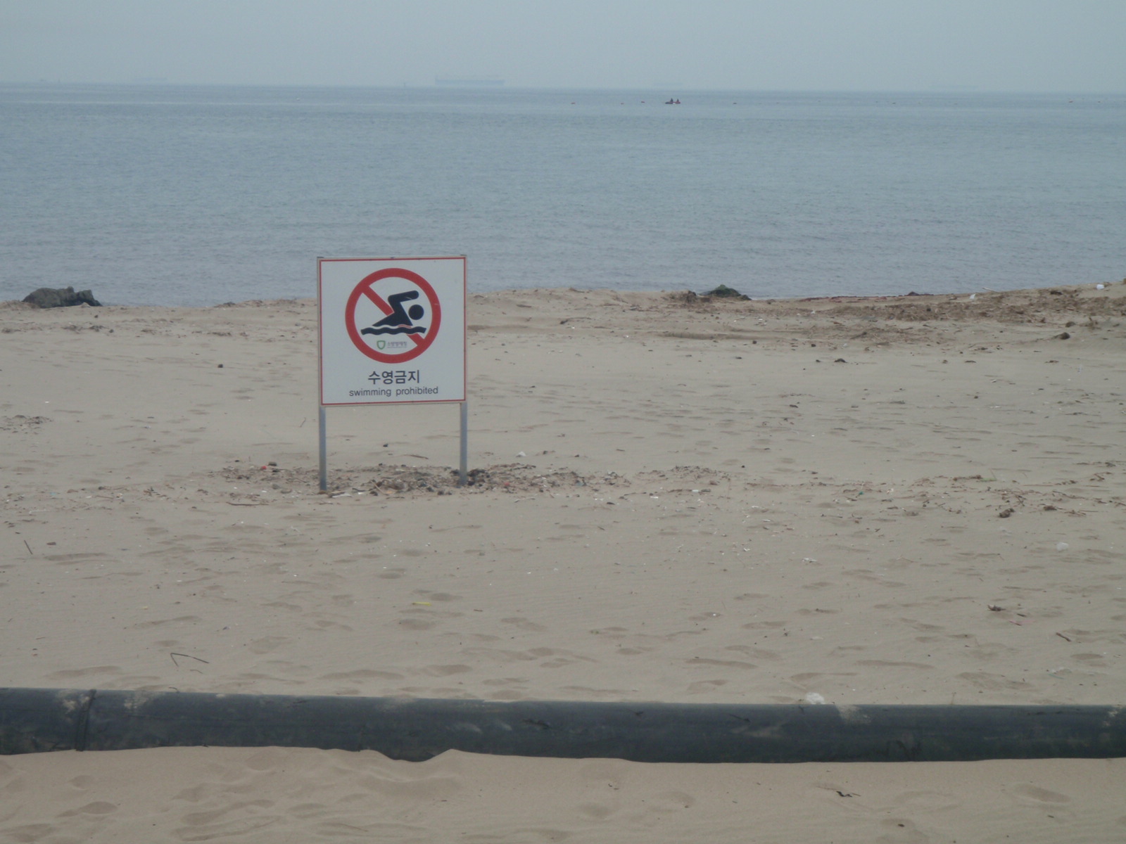 Hmmm…people are fishing on one side of the beach and preparing for the updcoming windsurfing competition on the other. But on this stretch – which, by the way is seperated from the other two areas by NOTHING – is a clearly designated no swim area, complete with a boat dredging god knows what out of the water.