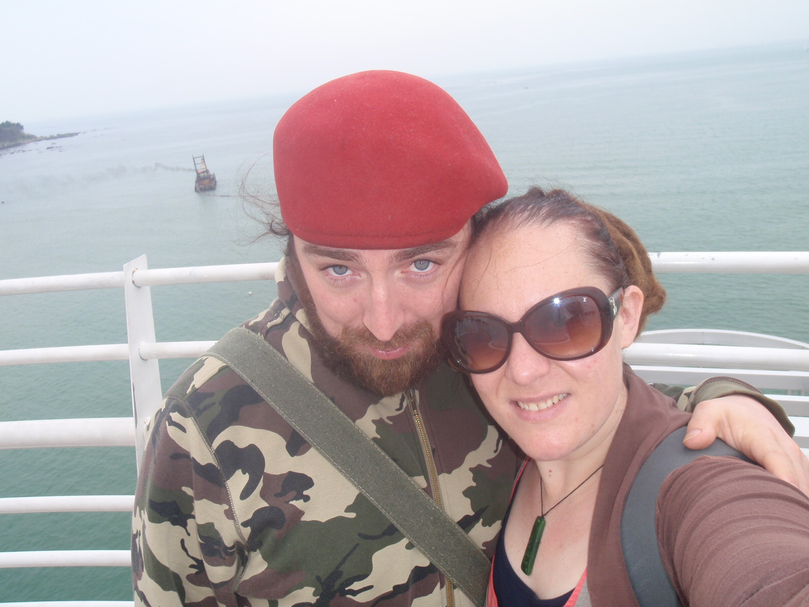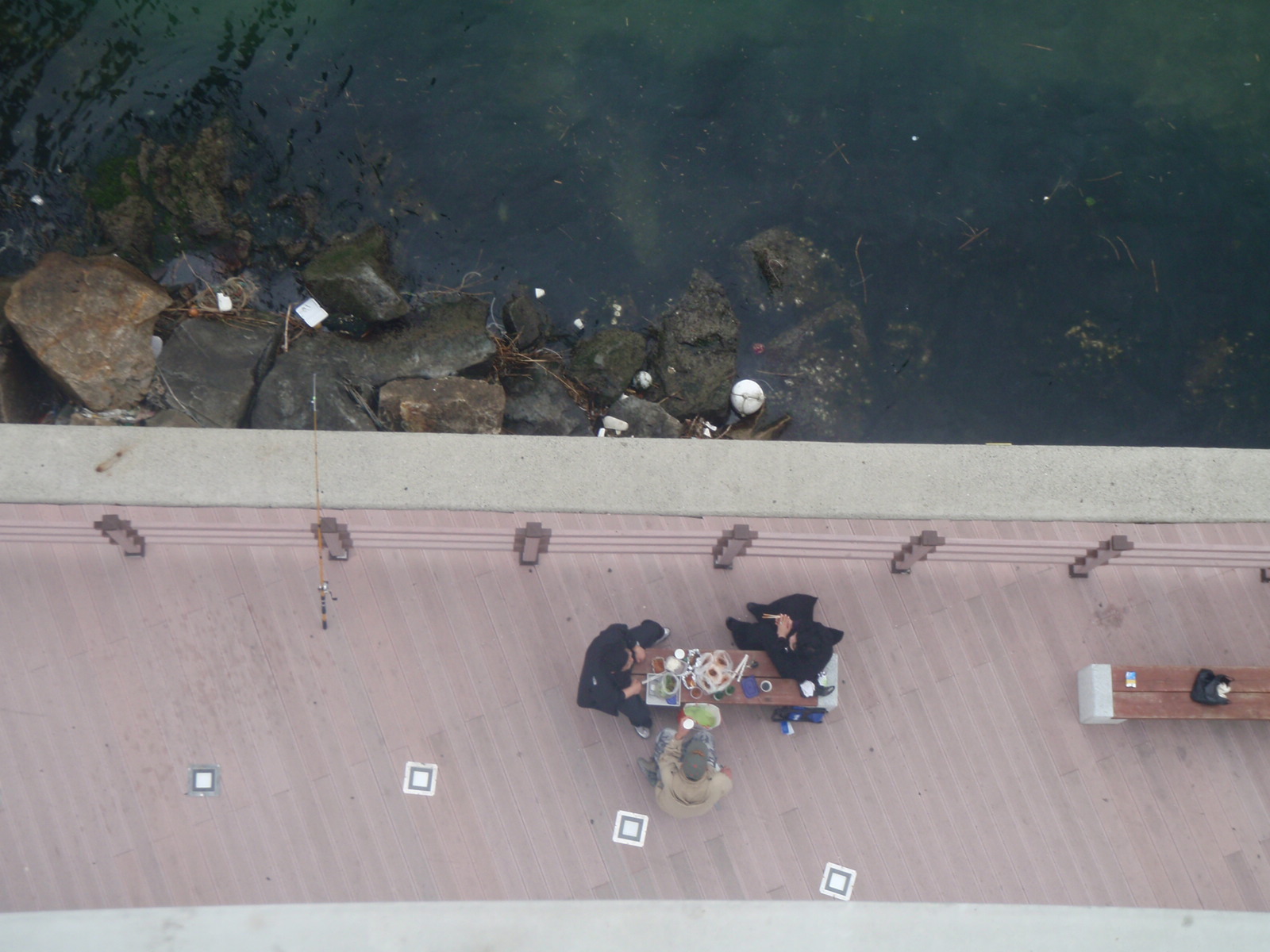 We notice a cool bridge further along so decide to walk over and check out the view from the top. There are people picnicing, families taking photos and, ahhh, pollution-puffing factories lining the horizon.