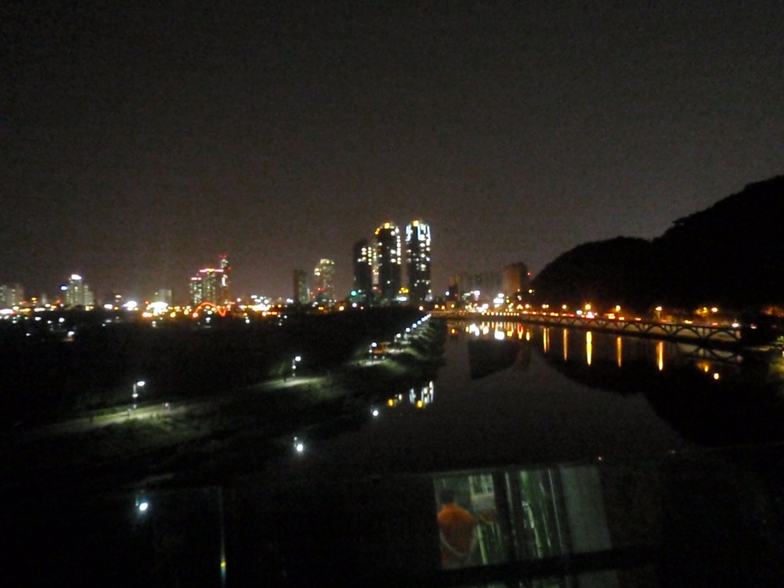 After seeing the show we then were introduced to another non-bad, actually quite cool feature of Ulsan, the Taewha River Observatory 태화강 전망대. Granted, we went there initially because we’d heard there was a famous cafe on-site but quickly realised that the reputation is due to not only its coffee but also its location. Taking the lift up to the top of the tower, the outdoor viewing platform provided us with great views right down the river as well as over the Ulsan skyline.
