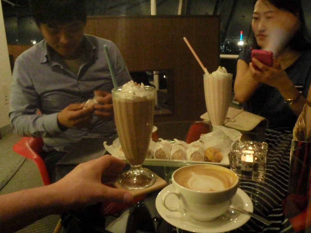 The place is lovely but the best bit is that the cafe slowly revolves allowing you to do a complete turn in just on an hour. You spin gently while sipping your coffee and every few minutes have an altered viewpoint of both outside the window and inside the cafe, all without leaving the comfort of your seat! The coffees are very expensive, both by Korean and New Zealand standards, but the experience makes you forgive that. Dan declared that the chocolate shake he ordered was “the best he had had in years.” The coffees were pretty stunning looking too!