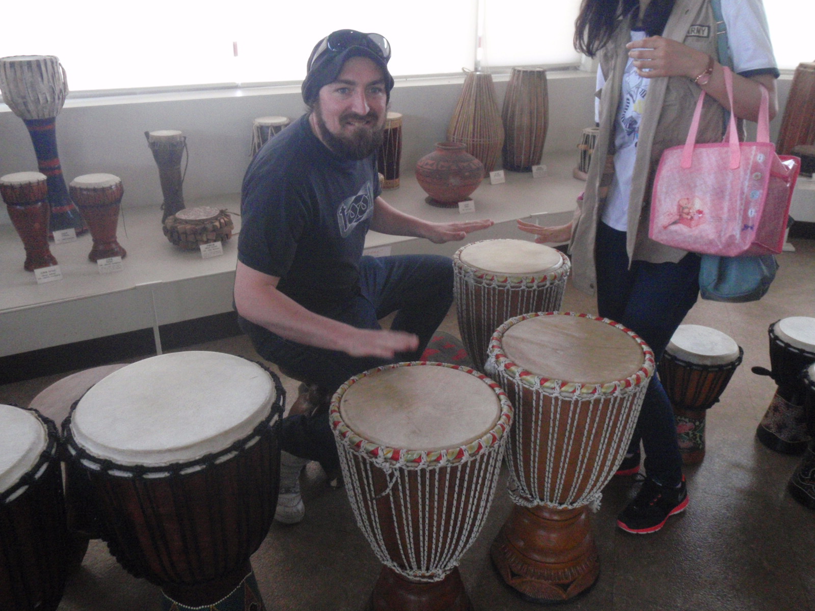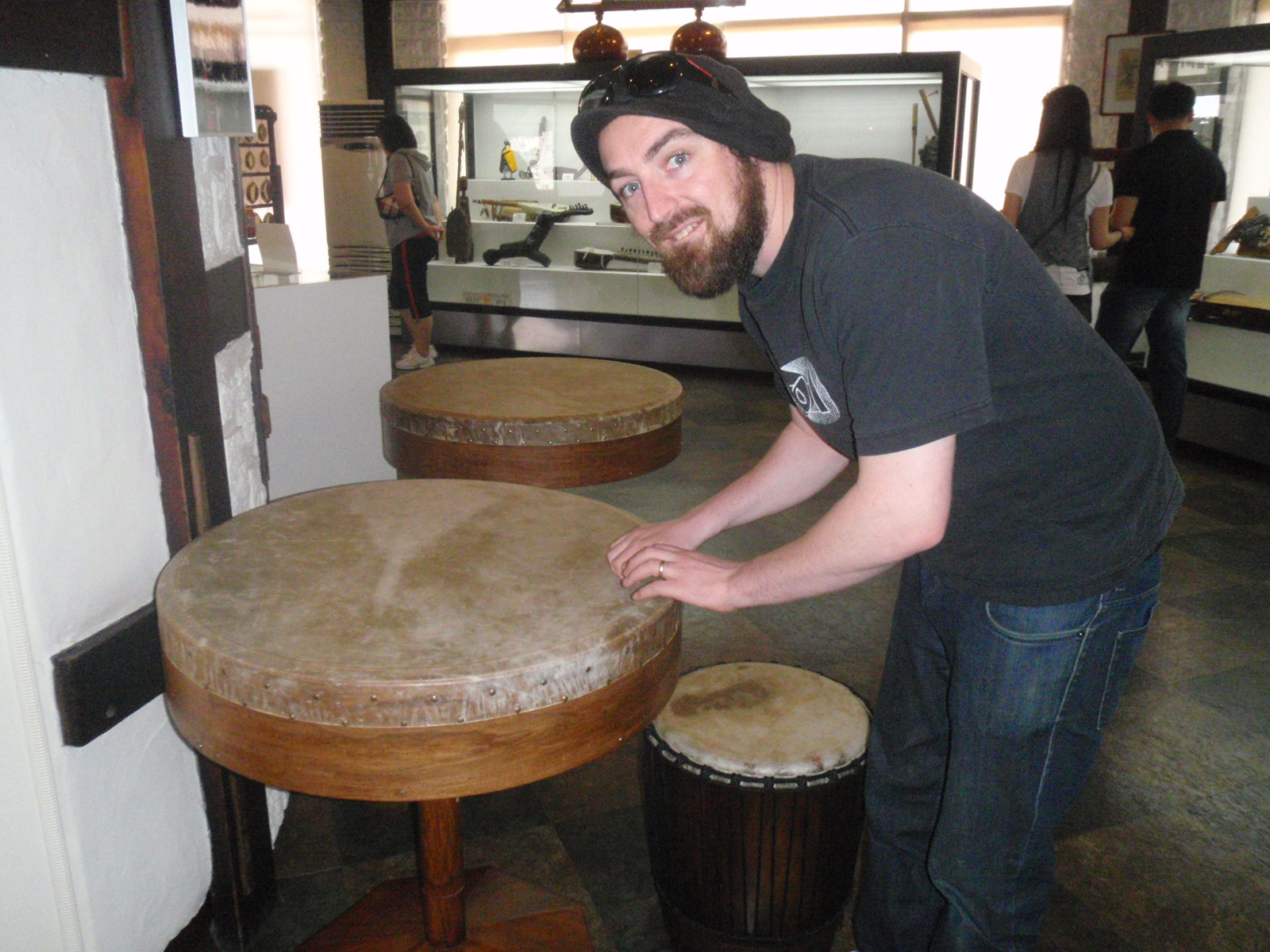 Dan gets into trouble almost immediately by banging away on some drums.  Apparently, the downstairs are of the museum is for “look only, no touch” and if we want to indulge our inner hippies, the place for that is upstairs in the “touching room”.