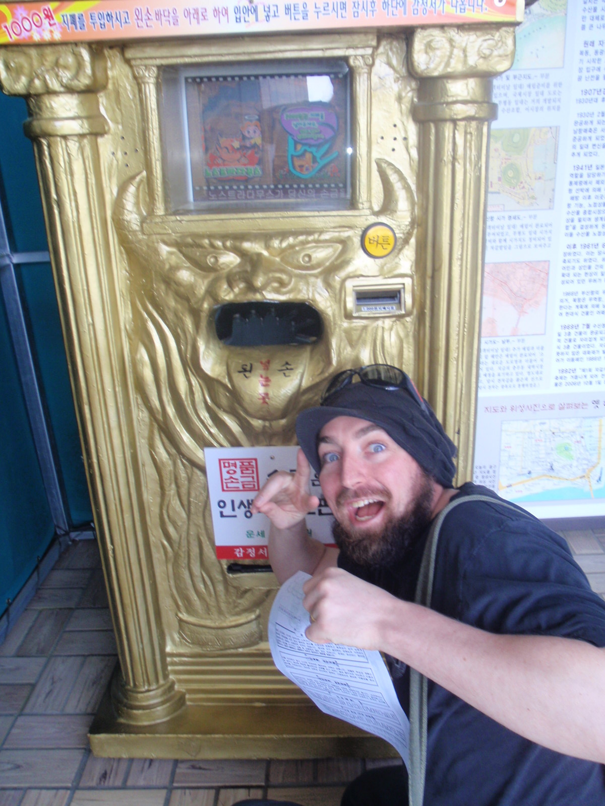 Sadly, the full page print out is in Korean.  A rough translation from our friend ensured Dan that he would have a great life, a wonderful love, blah blah.  “That’s all very nice, but will he be rich?” H-J enquired…