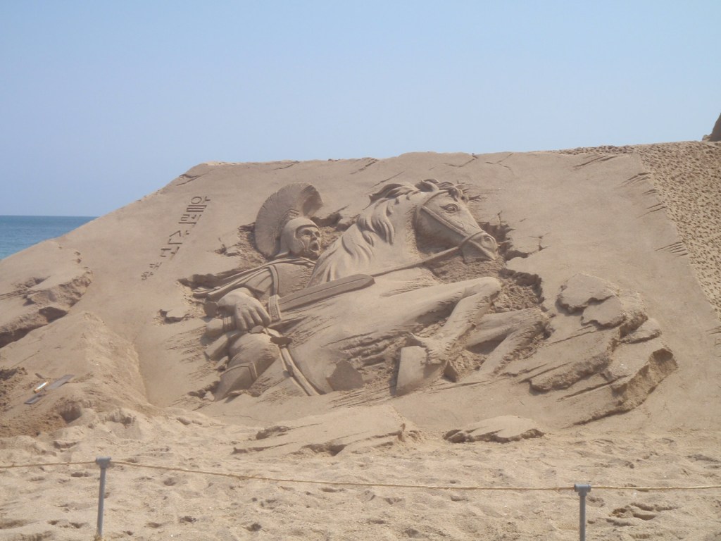 On a beautiful summer day you really don’t want to be hanging in the industrial wasteland that is little Deoksin village.  The beach was calling to us again so we decided to join the inevitable crowds and head to Haeundae Beach to check out the 2012 Sand Festival. We had heard good things…