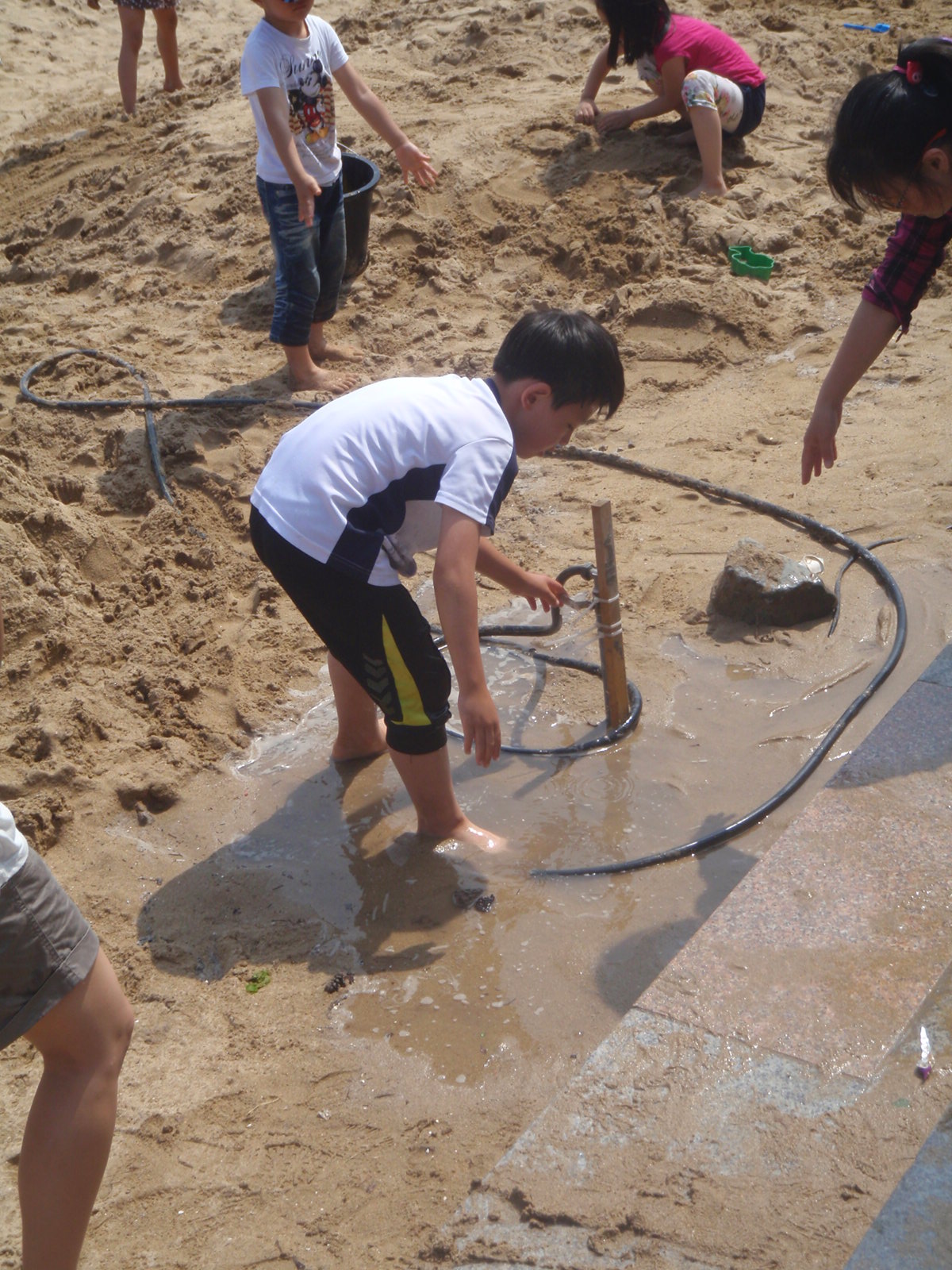 When stepping on the beach we noticed a mound with a castle on top. Getting closer it was, literally, the most extreme sand castle ever…. this isn’t the kind of sand castle you’d make at Lyall Bay, this was the boss of all sand castles. So much detail had been put into it. Like the fountain at the Lotte department store in Nampo – this sand castle oozed arrogance and grandeur.