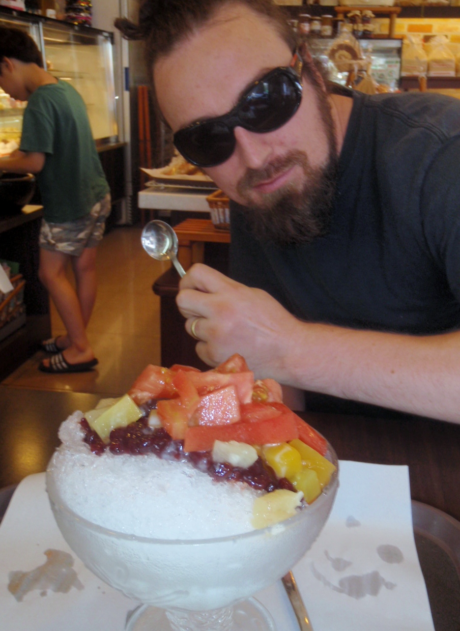 Nah I’m in total agreement that tomatoes on your dessert is odd! Luckily, this has only occurred once to date…I think its worth trying patbingsu in its Japanese form while you’re there – its nine tenths shaved ice so really cooling in these muggy temperatures. I’d be interested to know what the Japanese variations are too!