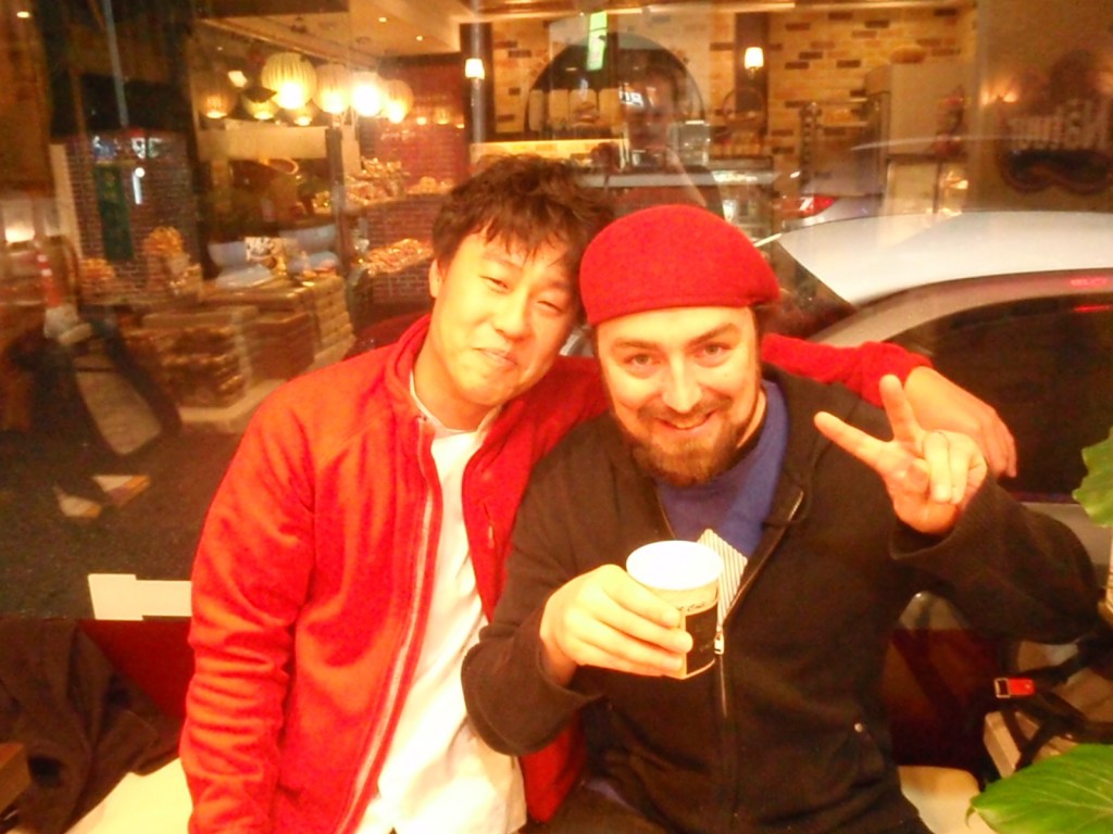 We recently made the acquaintance of the guy that works at our local convenience store. After wondering why he grinned so happily every time we went in to buy milk we figured out that he was the guy that had served us the night of our Duksin pub crawl and whom we had DEMANDED take photos with us.