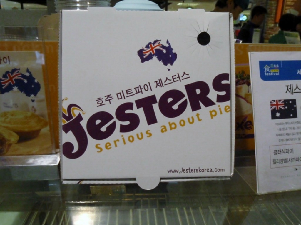 One of the great pulls for our trip to Daegu was the knowledge that it had a branch of Jesters, an Australian/New Zealand chain of pies. Meat pies are hard to come by in Korea and for any true blue antipodean, this is a real shame. How many of us have walked to the petrol station in our pyjamas with a hangover to pick up a breakfast pie? How many of us have scoffed a too hot pie straight from the pie warmer in a drunken stupor on the way home from a night out? A pie at a rugby game…a pie from the school tuck shop…a pie on the beach…a pie, well just cause pies are awesome.