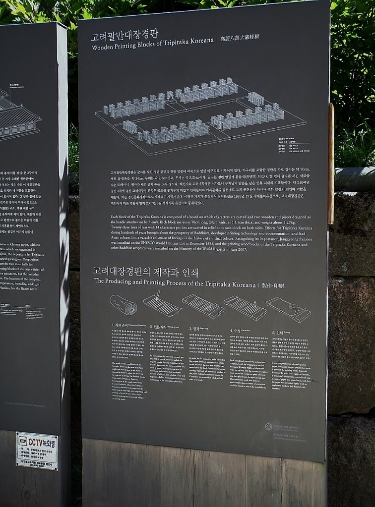 It turns out that the books that compose the Tripitaka Koreana are, like many relics, housed away from greasy fingers and damaging camera flashes. We had to suffice with a photo of the sign and some shots of the stunning building made to house them safely.