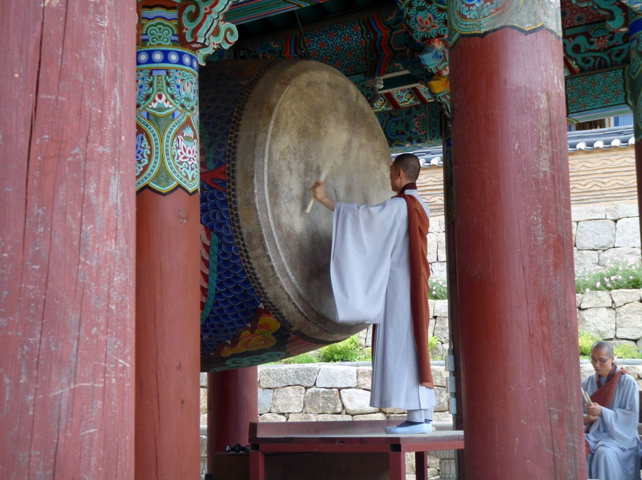 Masses of chanting commenced throughout the main temples and all the smaller temples at 10am. Its a rather surreal thing to experience, high up in the largely uninhabited hills of Korea. When the chanting ended, the monks then had a go on the drums.