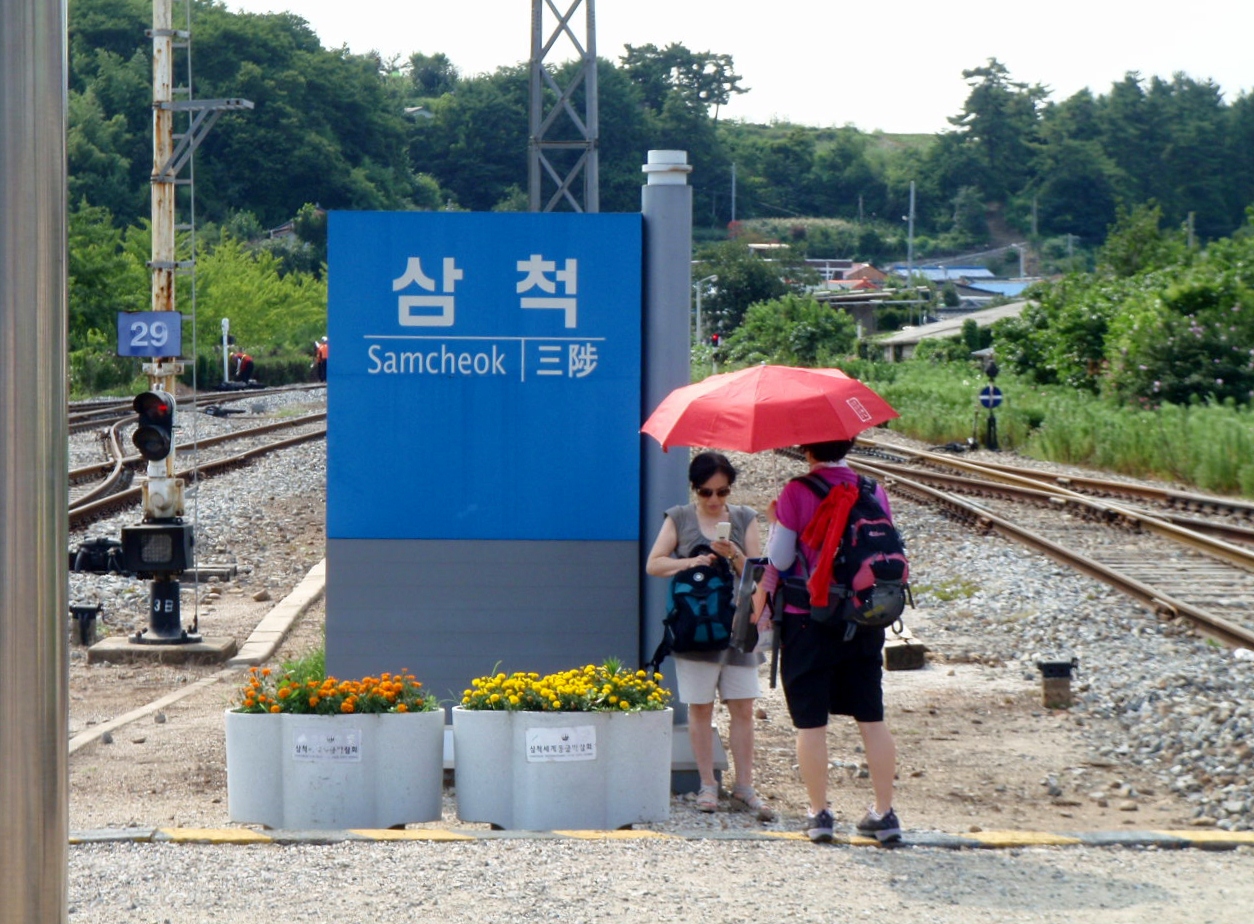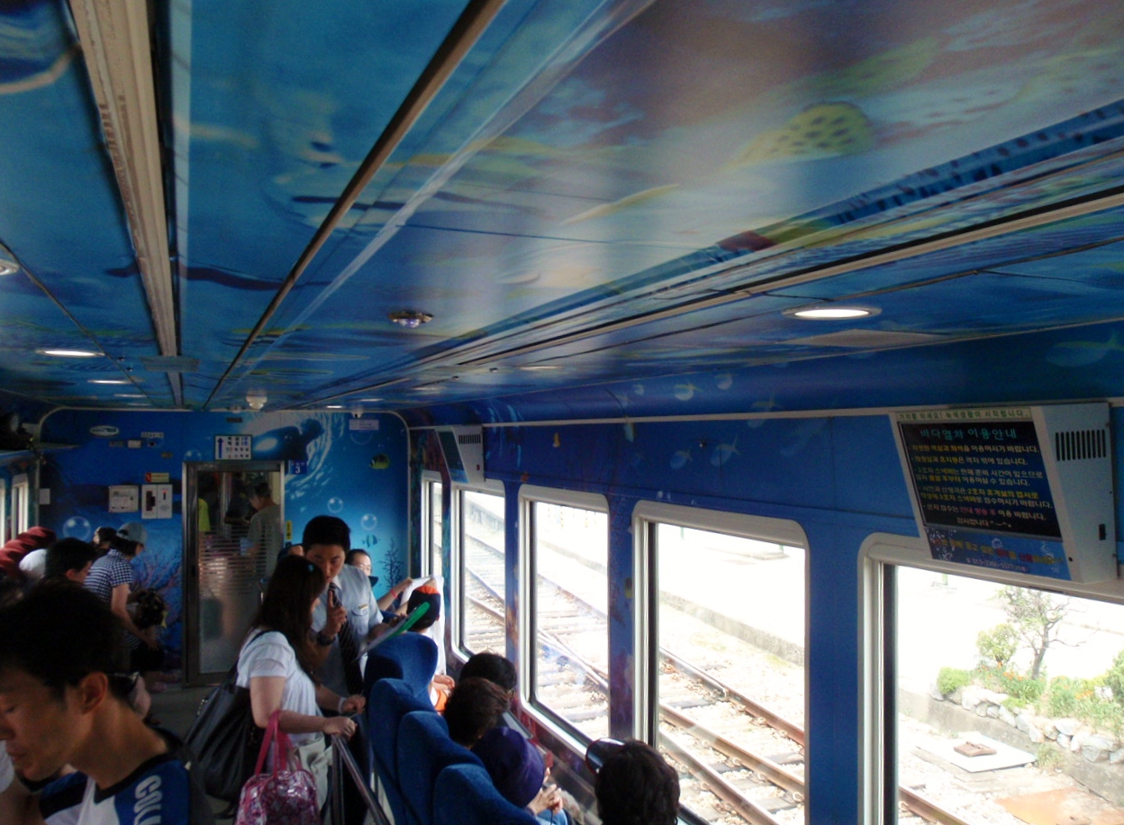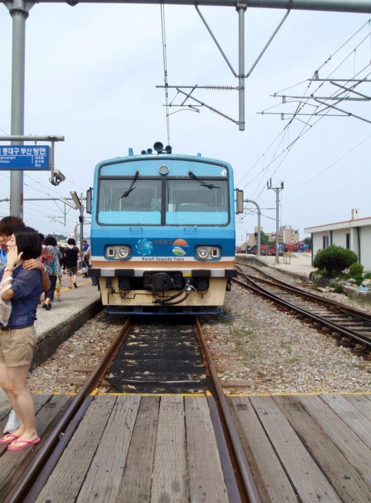 After a wonderful evening in Wonju, we made plans to see Bella down our way back in village toward the end of the week, and it was off towards the Gangwon coast for us.  During the bus ride to Gangneung, Dan stumbled upon an entry in Lonely Planet about a Seatrain which winds it way down the coast from Gangneung to Samcheok.  We were sold on this idea so stopped in Gangneung for as long as it took for the lovely woman at the information centre to score us the last two seats on the Seatrain.  And just like that we were off again.
