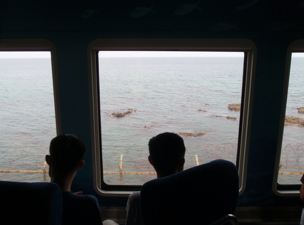 The carriages are renovated so that you can peer out at the passing scenery.  Being the height of the summer vacation period in Korea, the train was packed so we were totally stoked to have made it onboard.  It rolled through more of that gorgeous, green landscape we’d come to expect in the Korean countryside.And there were also sombre reminders of a country with a history of having to protect its shores from invaders.  The threat of war is never particularly far from sight in South Korea, even today.A quick stop mid-way through the journey allowed all the passengers to jump off and take a few snaps beside the lovely winding coastline. Never one to pass up the chance for an ice-cream, Dan went off in search of the train cafe and made friends with the staff.  Being the only two foreigners on the train, and mentioning that it was just on our one year wedding anniversary, we recieved the star treatment for sure!  We were presented with our very own Seatrain Coffee Mugs which have taken our morning coffee to a whole new level.  The coast that lines Gangwon-do is exceedingly pretty and, best of all, largely unsullied by large crowds of over-clothed people.  Before we knew it, we were in Samcheok, ready to hit the town.One final glance back at the Seatrain and it was off to see what we could see.