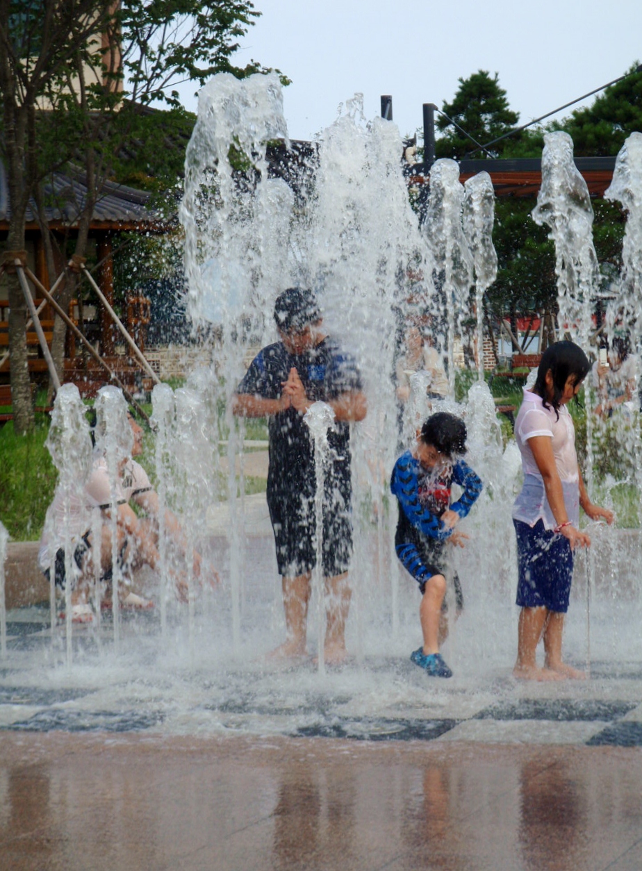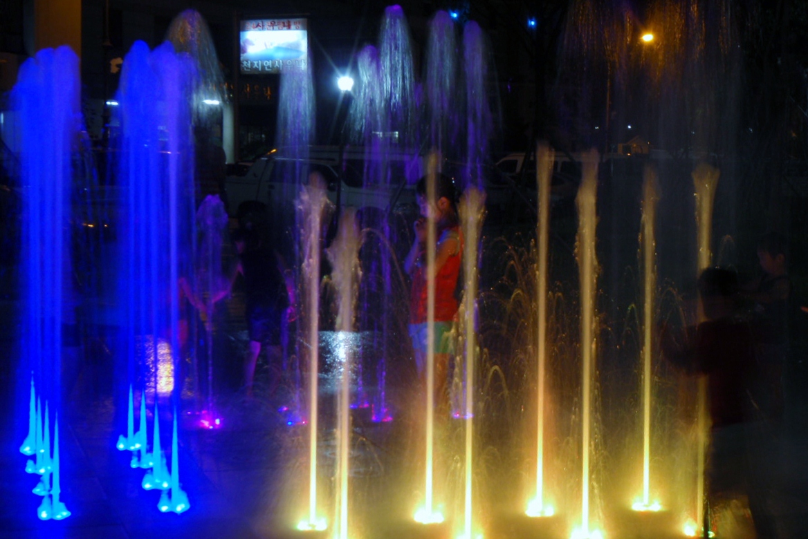 In the meantime, we busied ourselves with the attractions of the cave museum.  All caved out, it was time to head back to town to execute our sneaky night-time plan – alas, the kids were STILL there, making the most of every drop of water shooting up in colourful jets.  Only slightly less creepy than bathing with other peoples’ kids, we took photos of them instead. And with that, a lovely first day in Samcheok was coming a close.  Just enough time to sit back in a local cafe and plan the next day’s adventures, before retiring for the evening.  An early start beckoned for something quite spectacular…