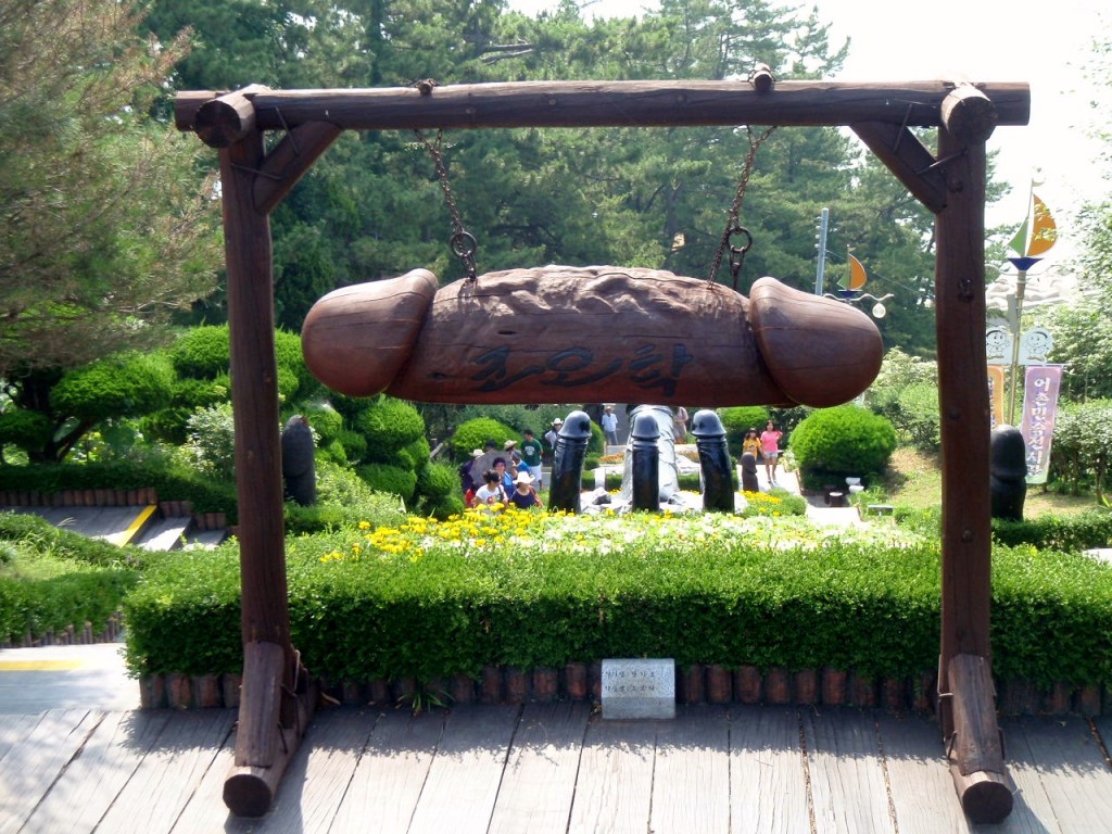 Up a hill, overlooking the stunning coastline of picturesque Gangwon-Do lies a rather odd sight…a park full of phallic statues.