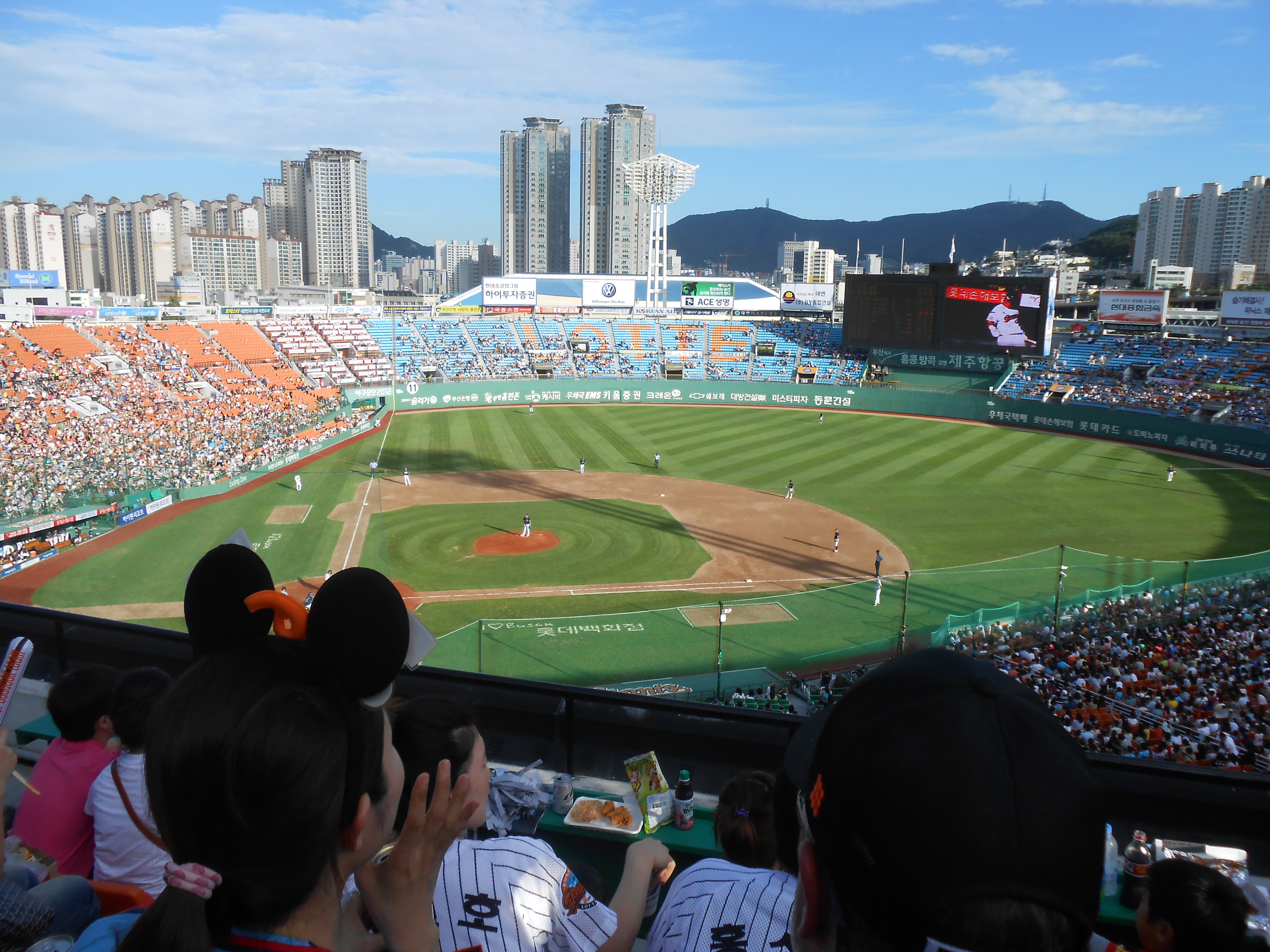 There are certain activities and events that are considered a staple of Korean-ness and baseball is somewhere near the top of this list.  With our weekends in Korea working our current contracts dwindling, we took the opportunity of having no other plans last weekend to book some tickets and head on down to Busan for a game.  Yes, we could have attended in nearby Ulsan but the fans in Busan are known for being particularly enthusiastic, our friend who is a baseball fanatic lives in Busan and, best of all, its the home of the Lotte Giants.  And Korean baseball doesn’t get too much more Korean or baseball-y than that.