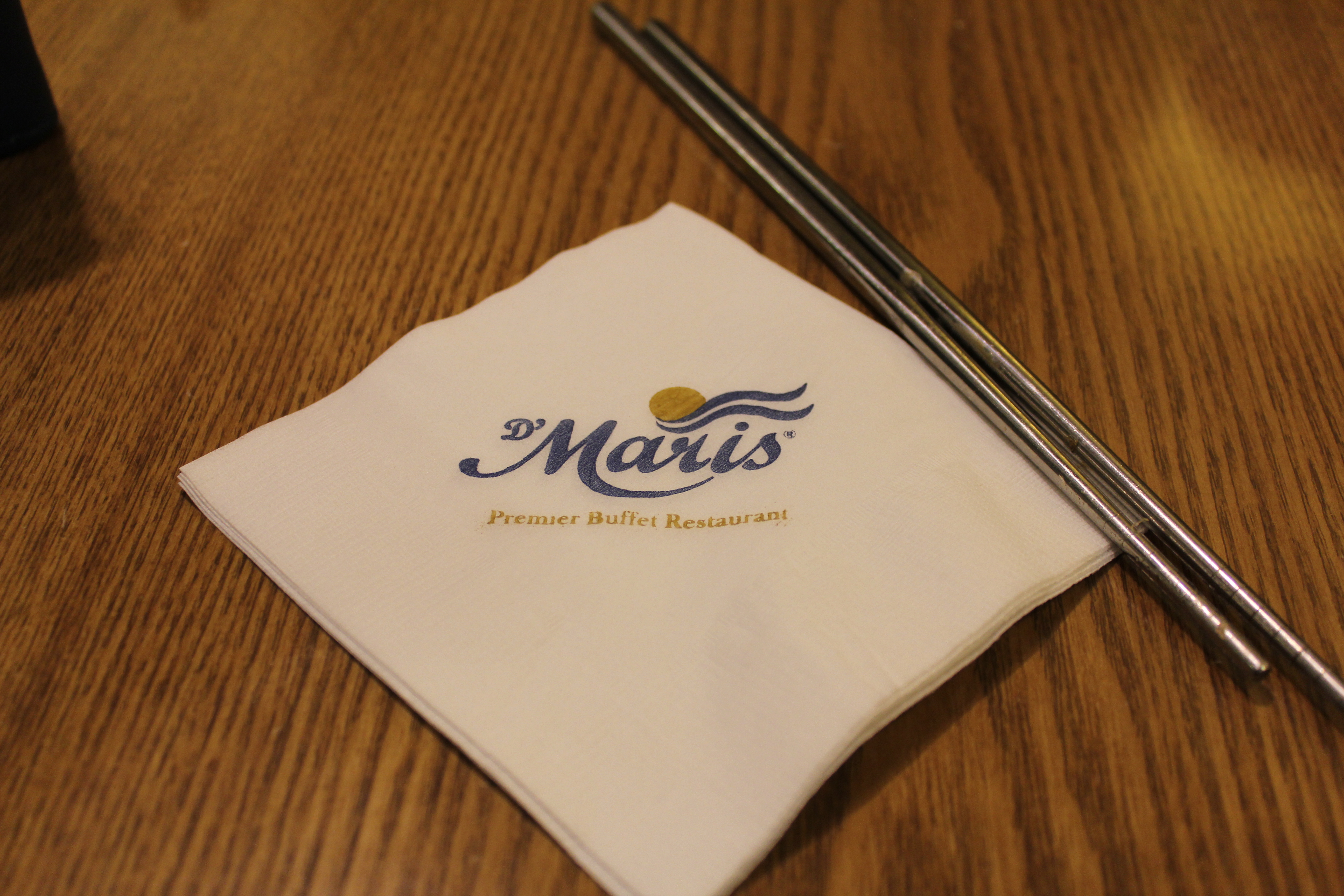 Finding ourselves outside the gigantic twin towers of the Sky Rex Building, we looked up and saw a sign that beckoned “D’Maris – Premier Buffet Restaurant”.