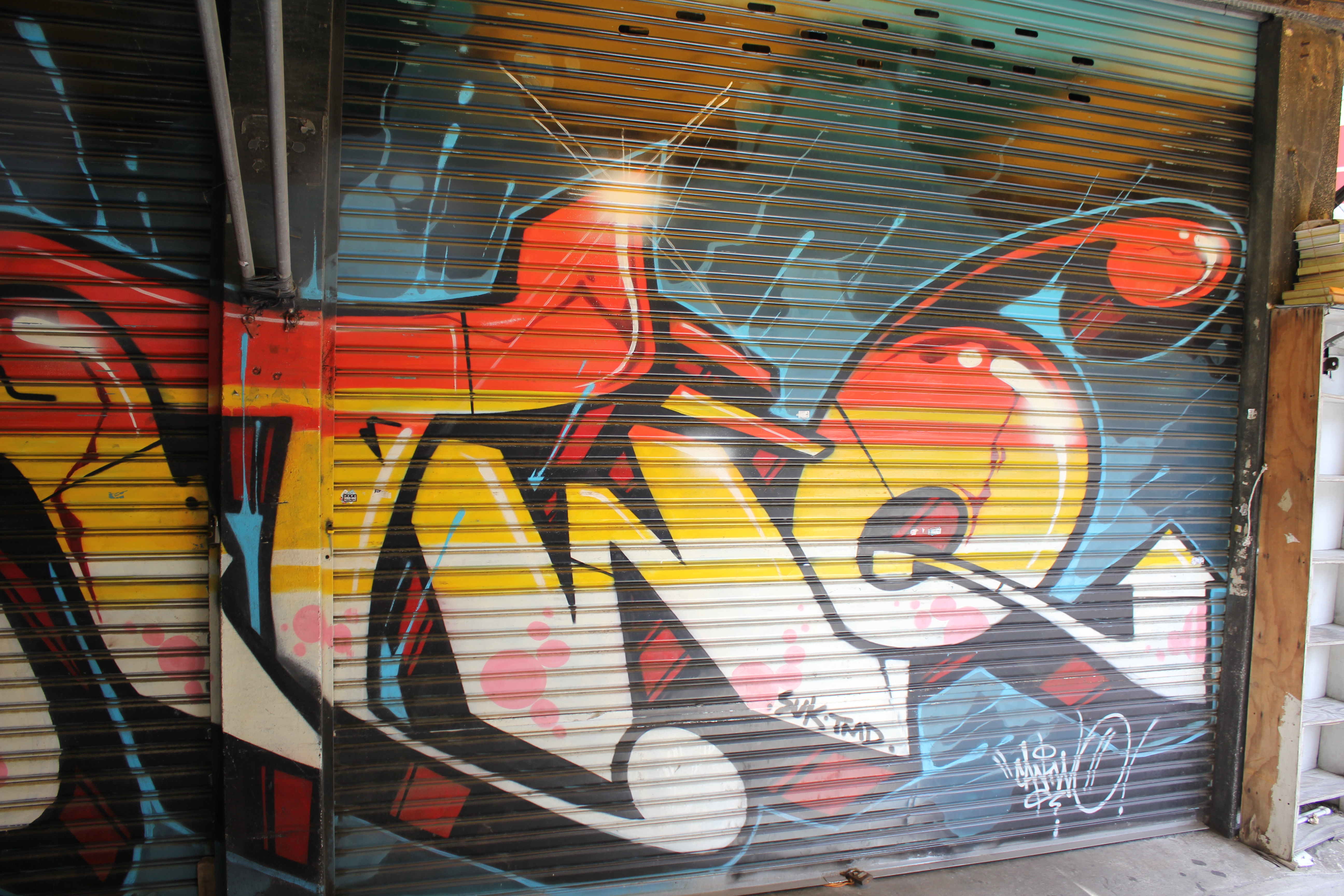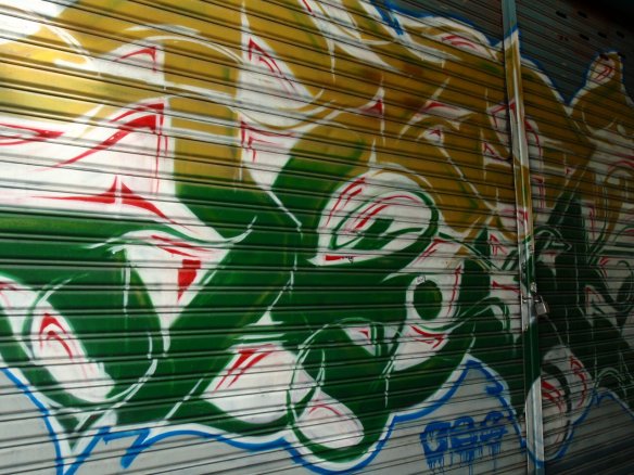 But with a public holiday induced mix of both open and closed shops, we were also treated to views of the stunning graffiti that lines all the corrugated pull-down doors of the alley.