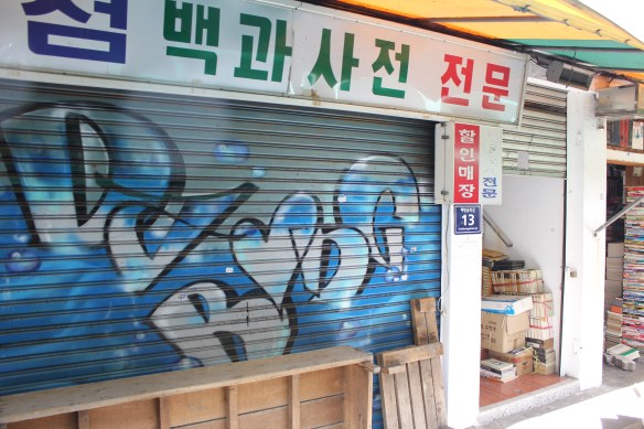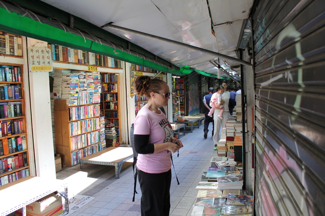 The long weekend just past was was for Chuseok – the autumn harvest festival where most of Korea (i.e. not us!) are off visiting relatives and celebrating a thanksgiving occasion.  Turns out this provided us with an even more unique view of Book Alley than we could have ever anticipated.