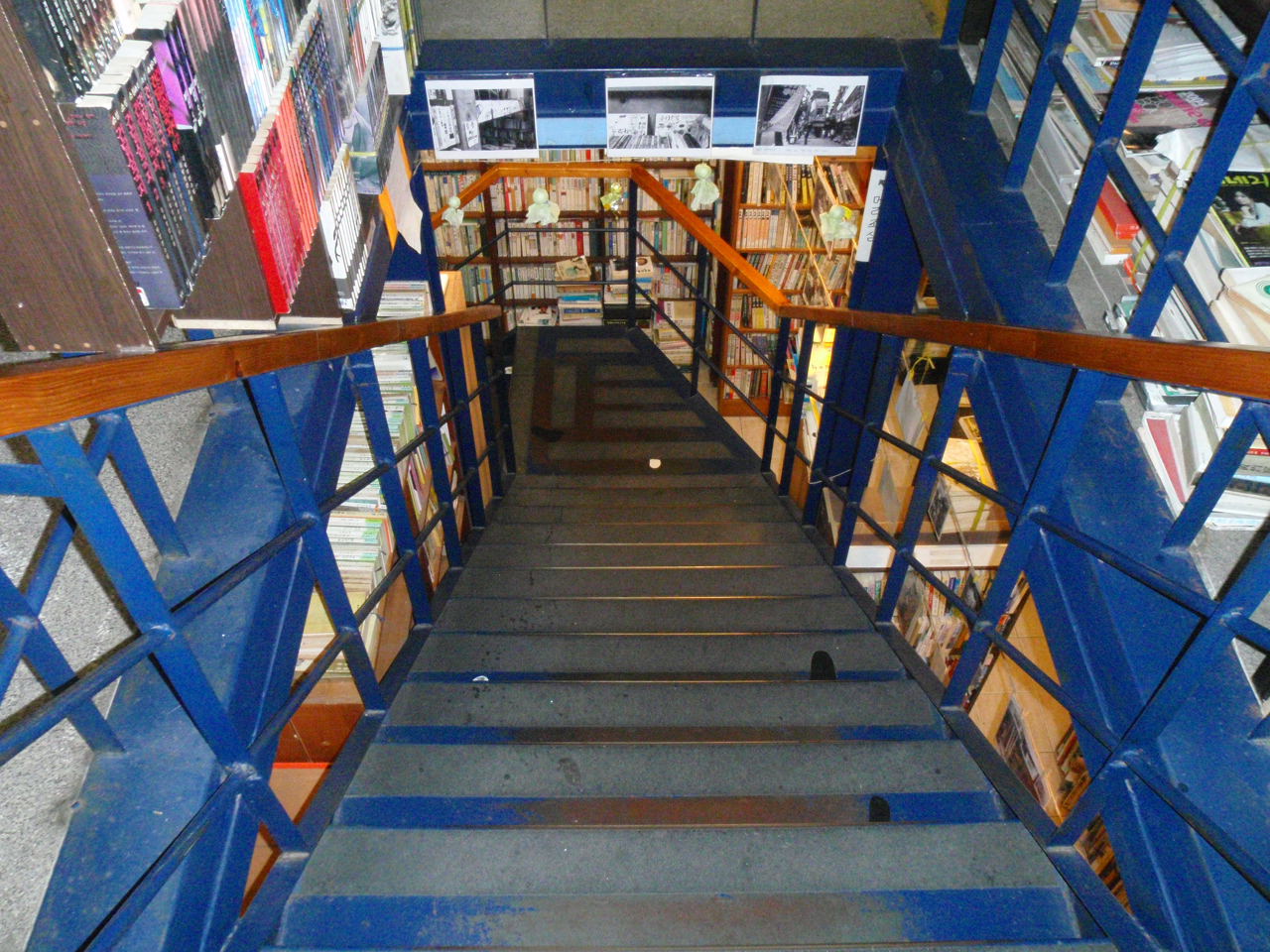 Tucked away in between two stalls was this intriguing stairwell replete with books and leading to…well…who knows?!