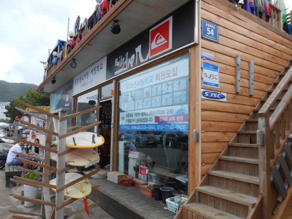 And while we’re on the subject of things that remind us of home, it seems a good place to drop the final instalment of our B Sides of Busan – surfing at Songjeong beach. Now while we’re not hardcore surfers by any stretch of the imagination we have grown up with enough swell and gorgeous coast line on some of New Zealand’s best breaks to be, well, snobs about waves. Recognising the beauty of the teeny little waves here as a great place to practice, and perhaps show up some of the Koreans who clearly have never seen a decent wave before, it was off to the awesome local surf shop to rent some boards and attack the surf. It became a bit of a fixture for us over the summer and if you are in the market for a good beach in which to start your surfing career, check it out. If you can get past the beach police, that is!