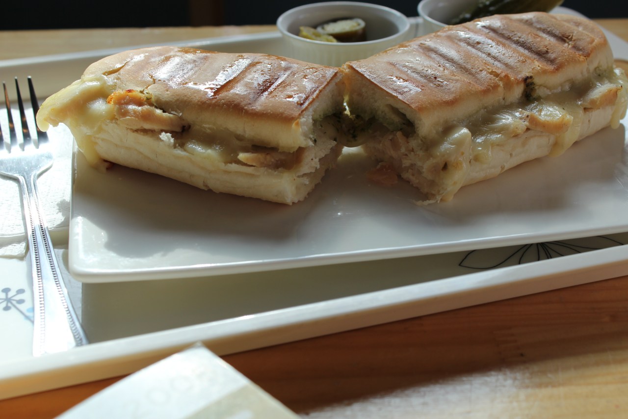 Recently, they added paninis to their range. The chicken, pesto and mozzarella is our favourite. Big enough for two, they come crispy, piping hot, oozing with cheese and accompanied by sweet little dishes of pickles and peppers.
