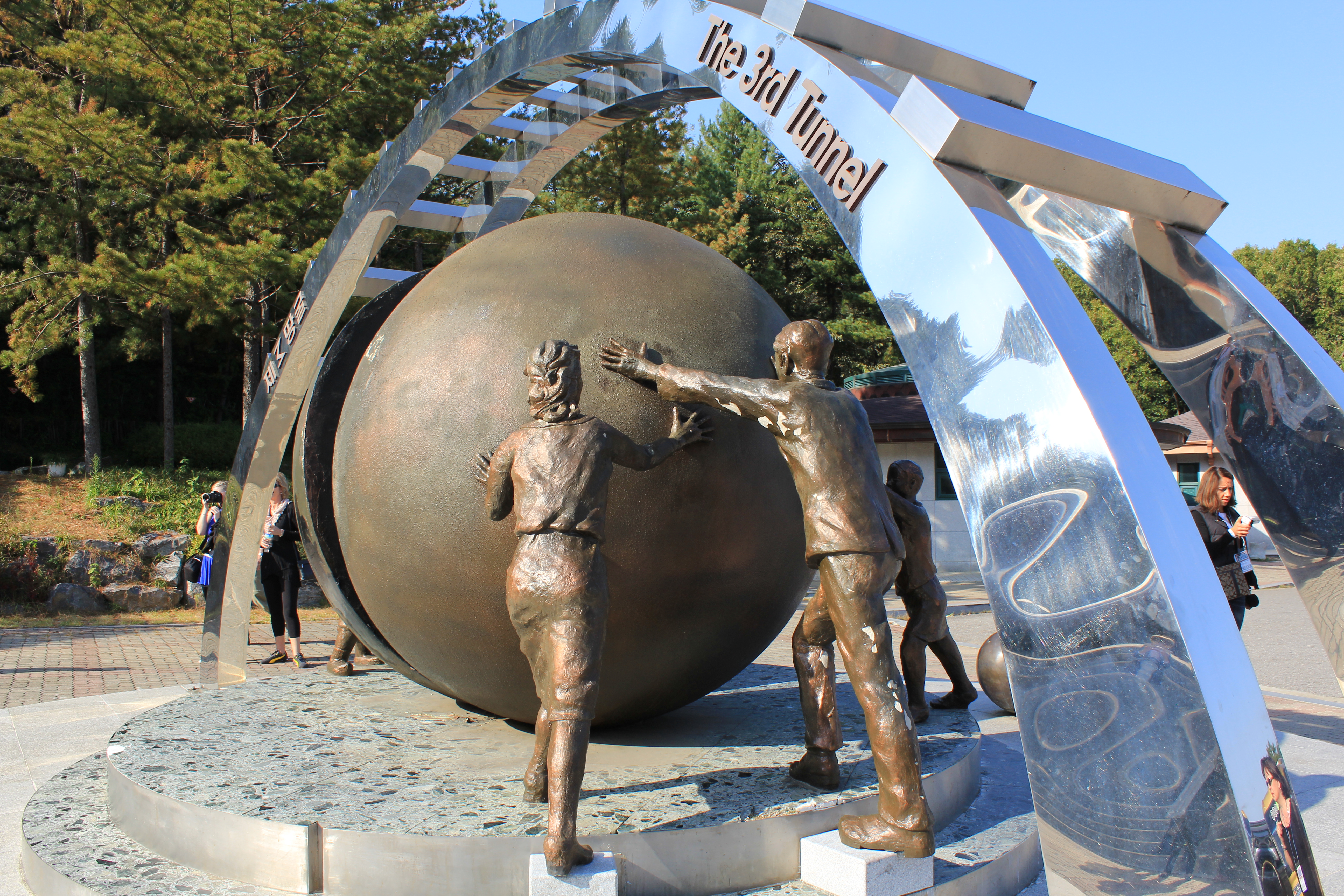 Onwards and upwards though – actually, no, it was downwards underground into the heart of the 3rd infiltration tunnel.  44 kilometres from Seoul, this tunnel was discovered in October 1978 based on information provided by a defector.  It is 1.7km long, 2 metres high, 2 metres wide and runs through bedrock at a depth of about 73 metres below ground.  Apparently designed for a surprise attack on Seoul from North Korea it has been labelled by the south as a “tunnel of aggression”.  No photography is allowed in the tunnel itself, so, um, we don’t have any!