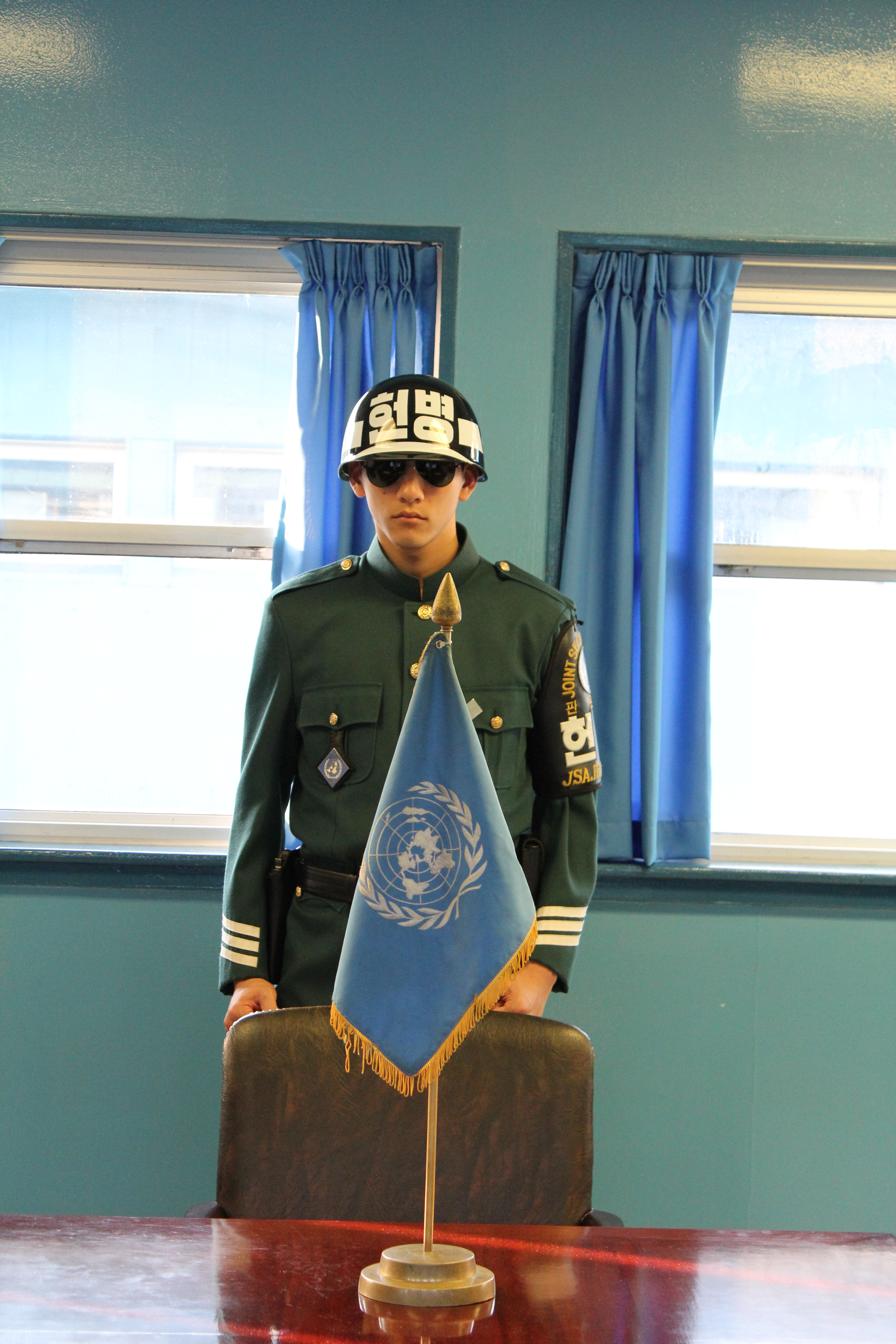 Following suit, we stood on our tip tops, zoomed in and here we go – North Korea!A few more photos here and there and then it was off to our security briefing before being admitted to the Joint Security Area (JSA), the only part of the Demilitarized Zone where South and North Korean forces stand face to face.  Exciting stuff!
