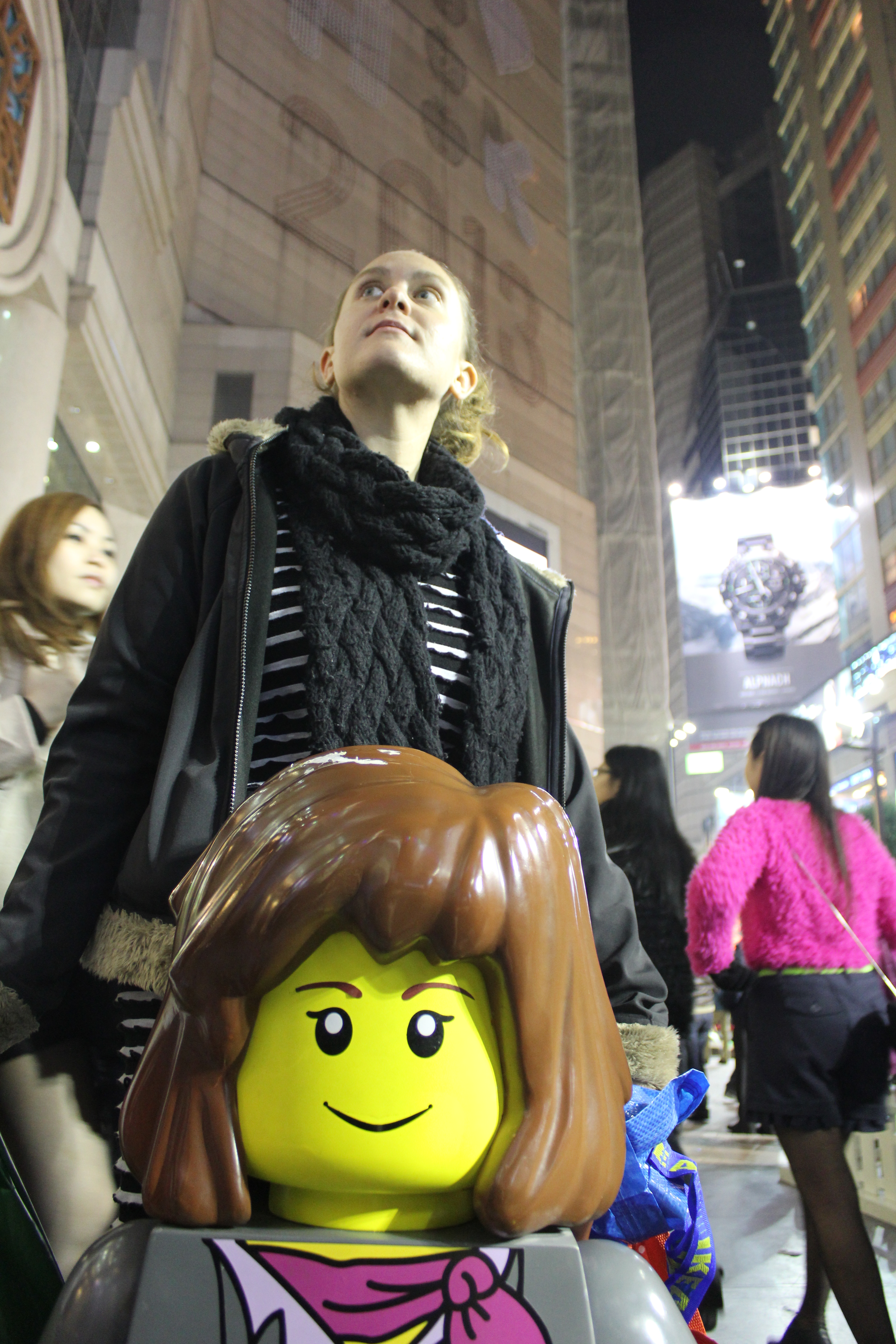 IMG_6516 A quick bolt between IKEA and the flash supermarket in Causeway Bay, Hong Kong, tonight found us bang smack in the middle of the cool Lego Christmas display outside Times Square.  We’ve been admiring it for weeks but what better time for an imprompu photo shoot than Christmas Eve!IMG_6517IMG_6531IMG_6536Dan even had a bit of time to freak out the locals – what’s new, eh?!