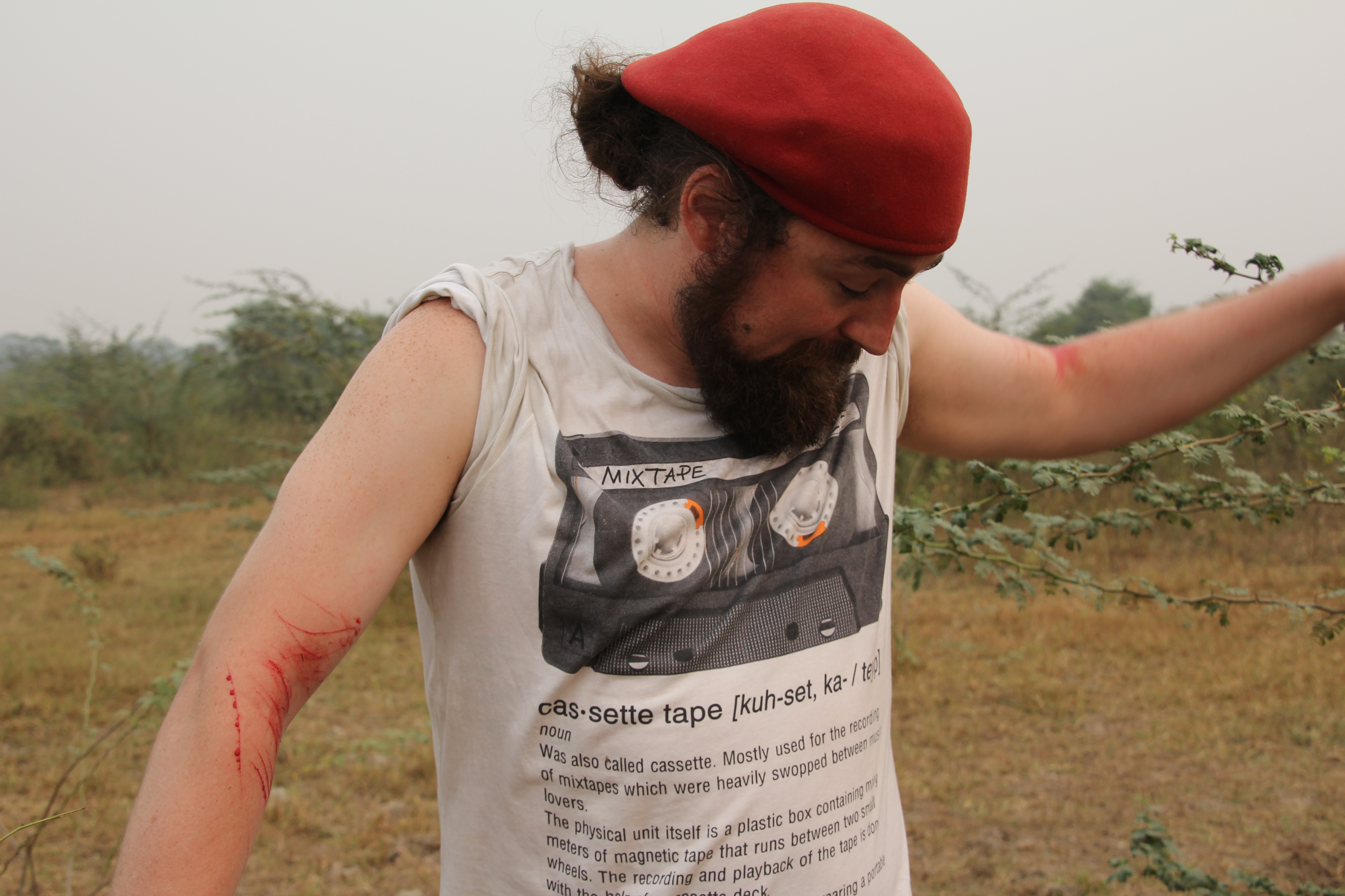 A minute later Dan came back to the road, his arms all cut up, bleeding and without half of the gear which he had left under the just-visited thorn bush a mere 10 metres away.