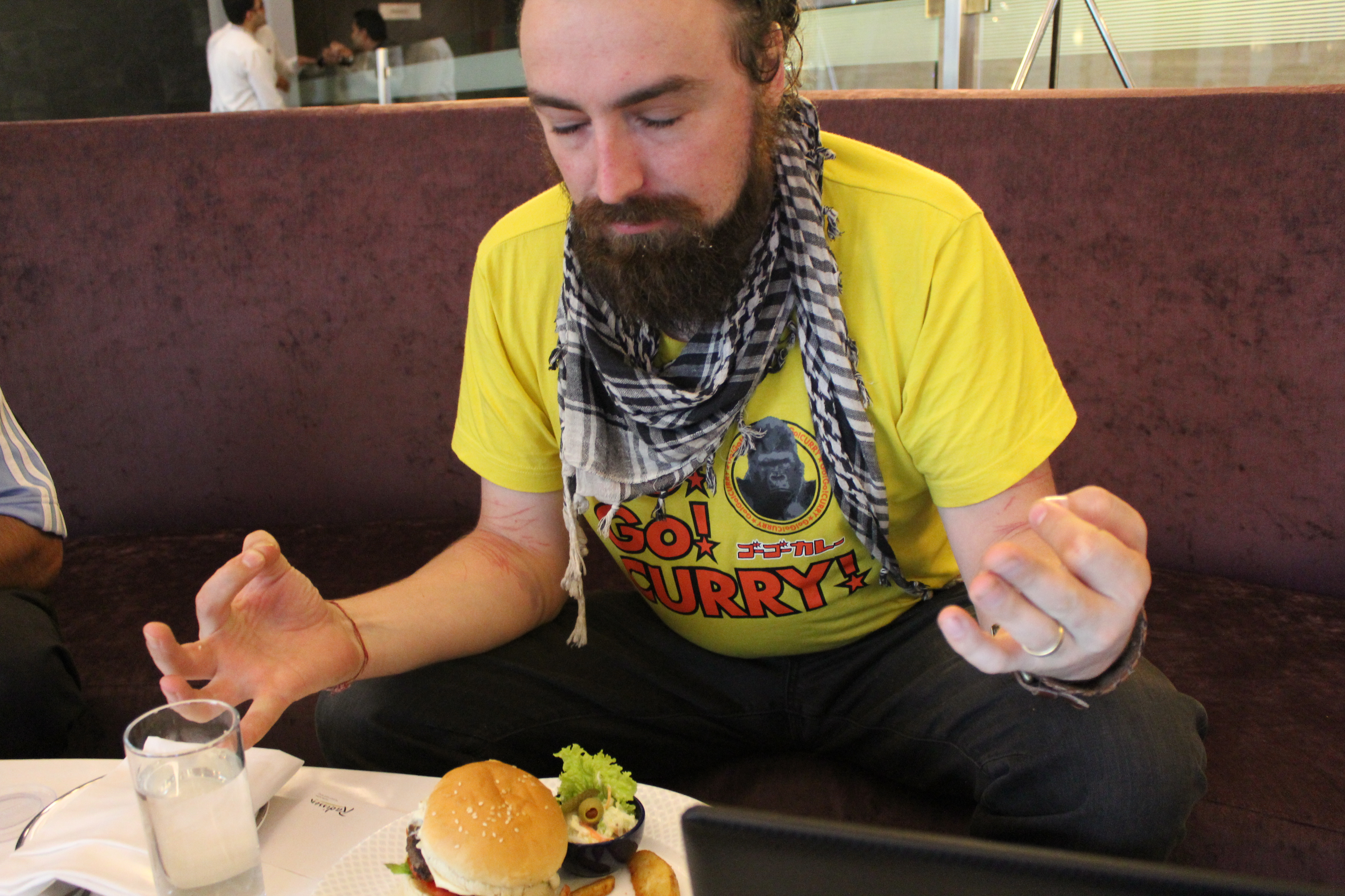 An afternoon can pass quite quickly in this fashion and before we knew it, it was dinner time. Now, for those of you who know us well you’ll know that we love our meat. And juicy, delicious beef is something that we’re spoiled with in New Zealand. In Korea we would go hours out of our way solely to find something beefy and delightful…so you can guess how were feeling in beef-deprived India…It turns out, however, that they had saved the best till last – we opened the menu to find A BEEF BURGER.