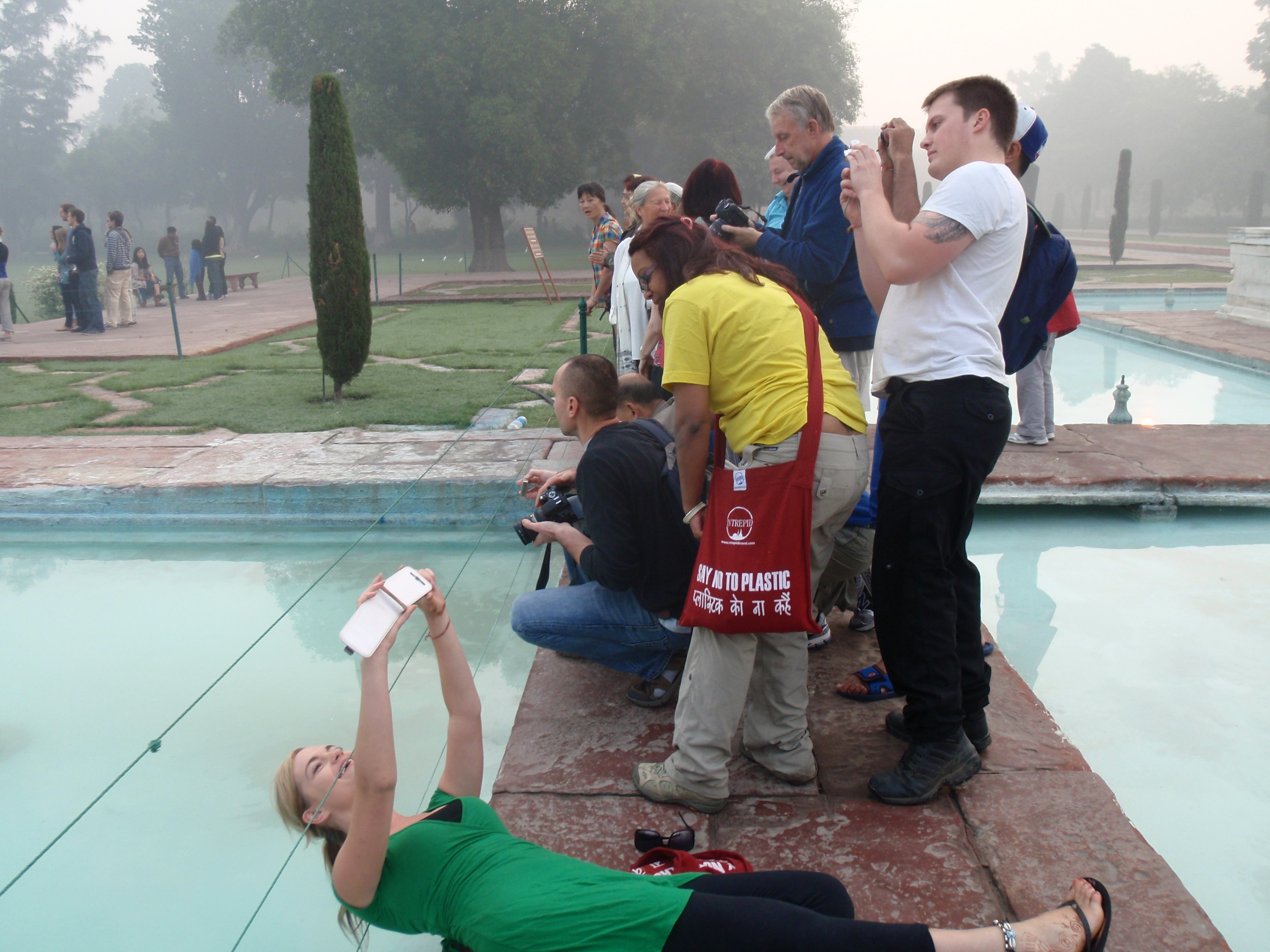 The day began with an early morning group walk down to the road to the Taj from our hotel, belting out the Happy Birthday song at the top of our lungs while sleepy Indian vendors set up shop for the day. As day broke, we arrived at the line to wait for the gates to open.