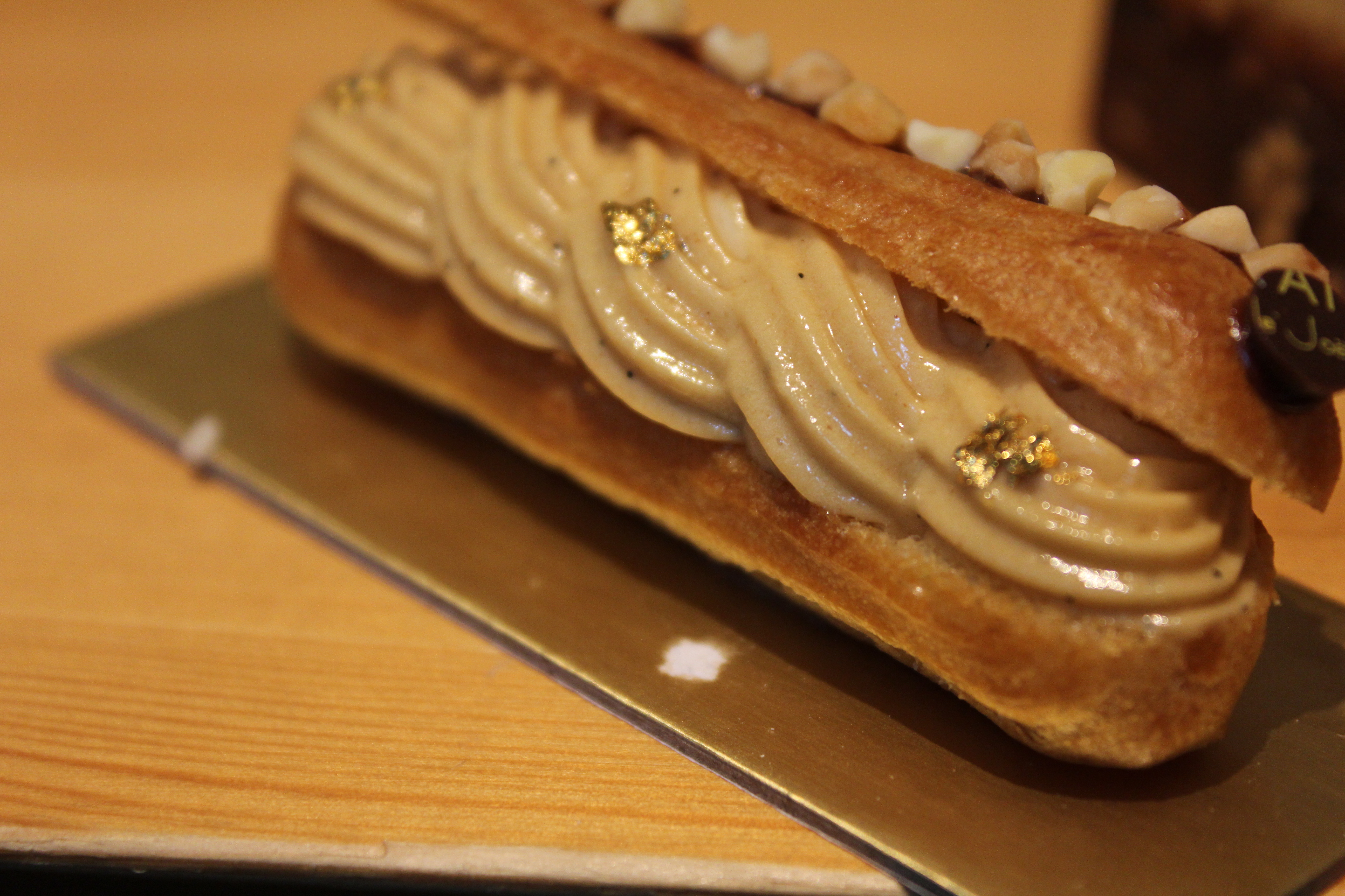 2013-07-21 16.24.09 2013-07-21 16.24.33 Oh yeah, we got distracted by fries but there were a couple of home made (actually, what DOES that mean in a fine dining establishment?) natural and lemon raisin scones with Devonshire clotted cream and strawberry jam, too.  Let’s face it, though – after a butter and truffle sandwich with some duck fat fries nothing really comes close.2013-07-21 16.12.49 2013-07-21 16.37.56 2013-07-21 16.46.43 It was a good intro to the sweet course though.  A second platter arrived replete with shining, intricately detailed creations.  2013-07-21 16.57.42 The Mont Blanc and the mango jelly cheesecake were pretty tasty.2013-07-21 16.57.52The Paris Brest was exquisite, from the soft waves of filling decorated with little glints of gold leaf down to the monogrammed chocolate button.
