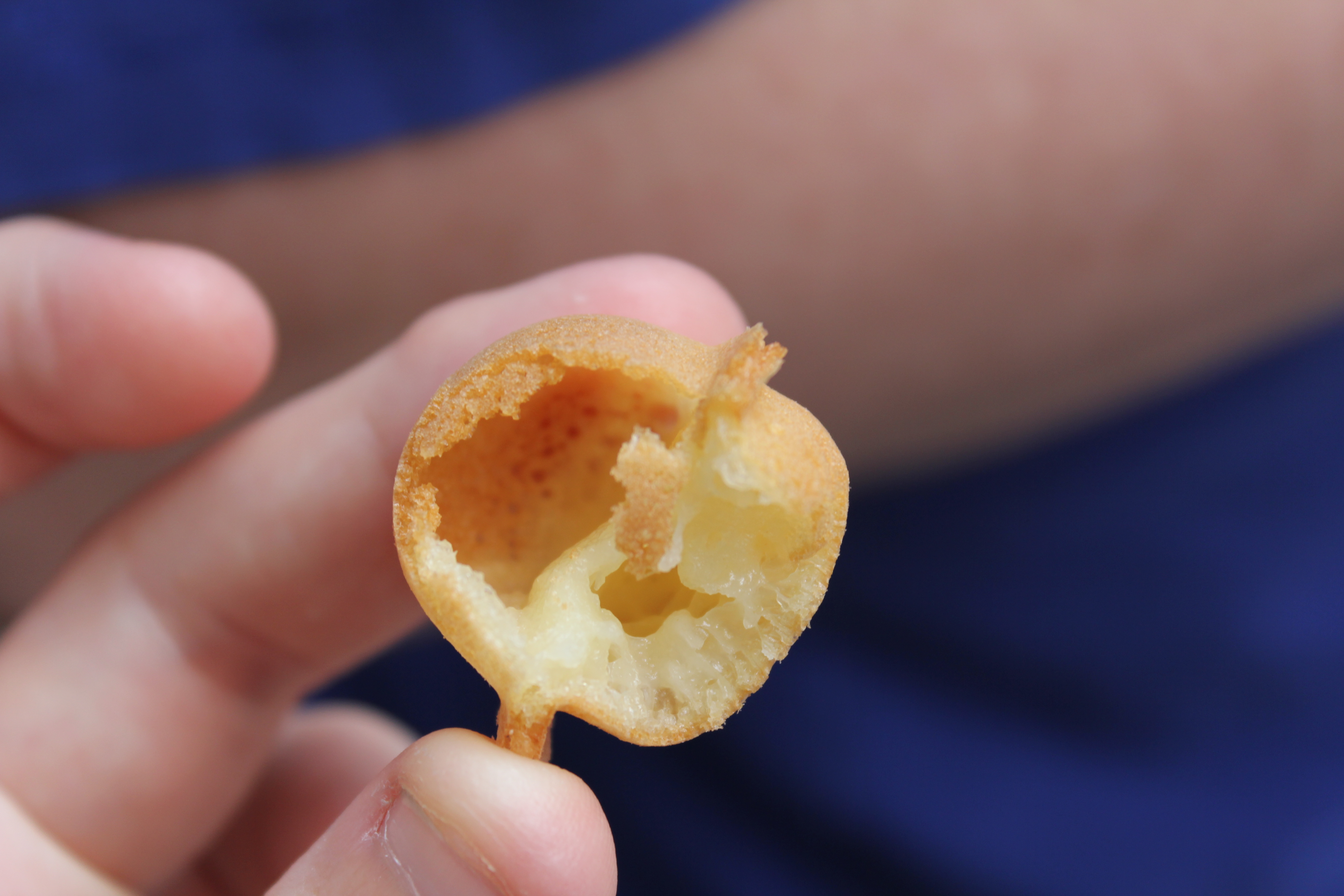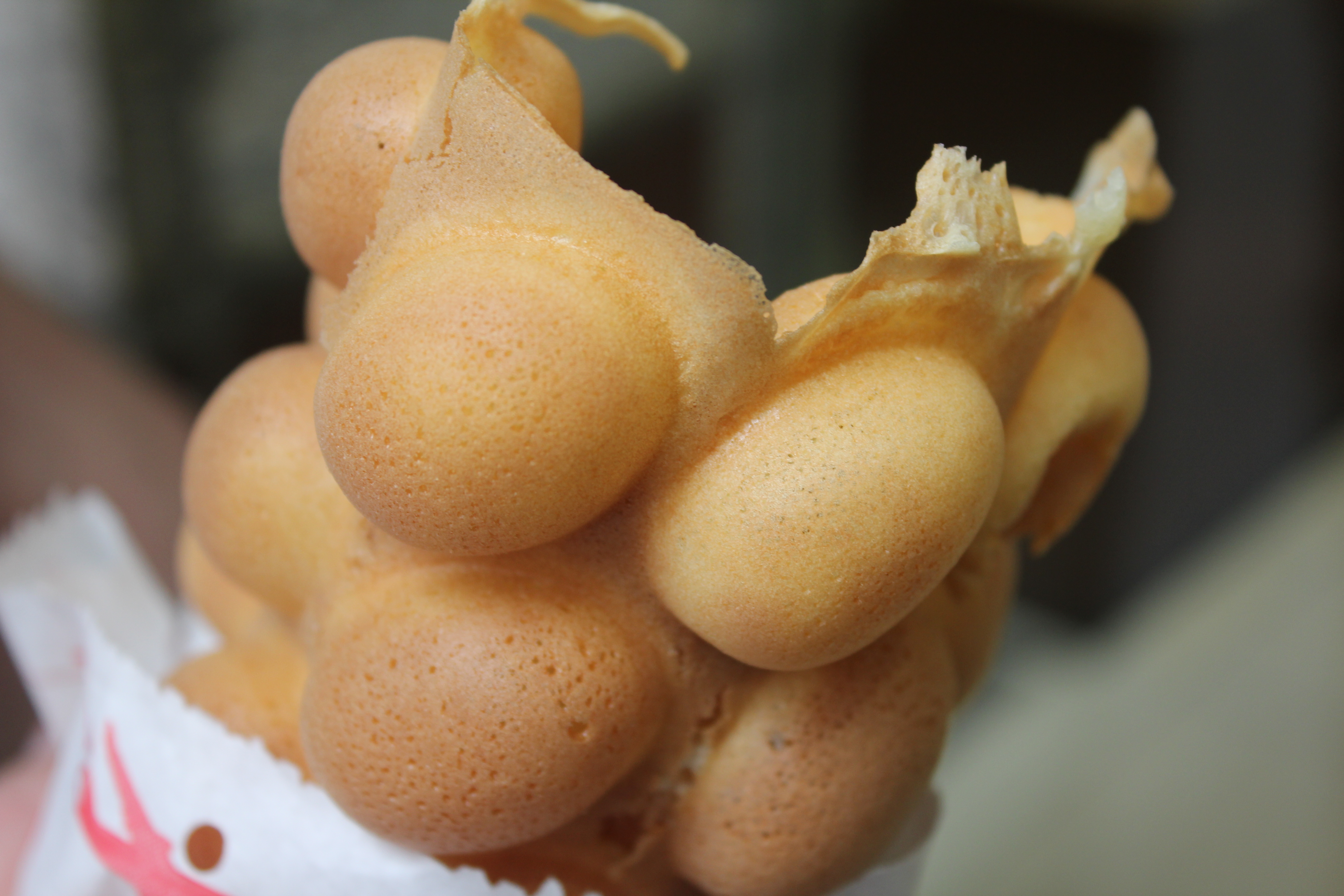 The ideal consistency is feather light with semi-hollow balls, that have a little bit of a soft/chewy centre,. The balls are bound by a thin layer of crispy batter, meaning you can break them off piece by piece and pop ’em in your mouth and making them the perfect snack to eat while meandering Hong Kong pace along the busy streets.